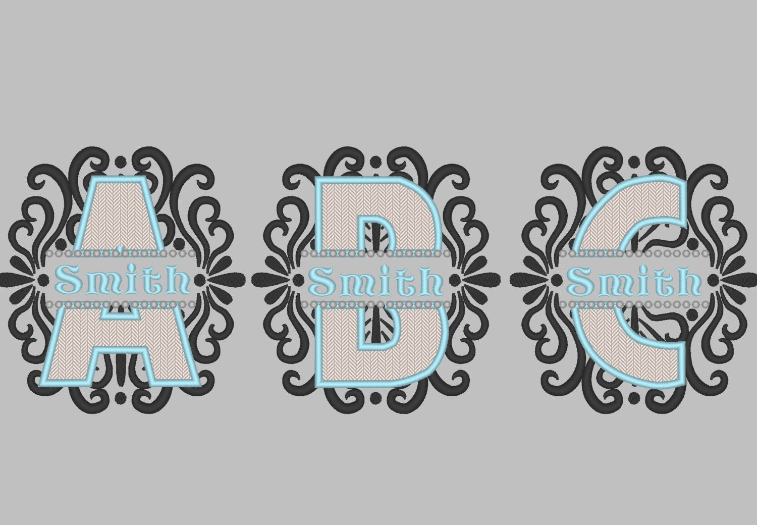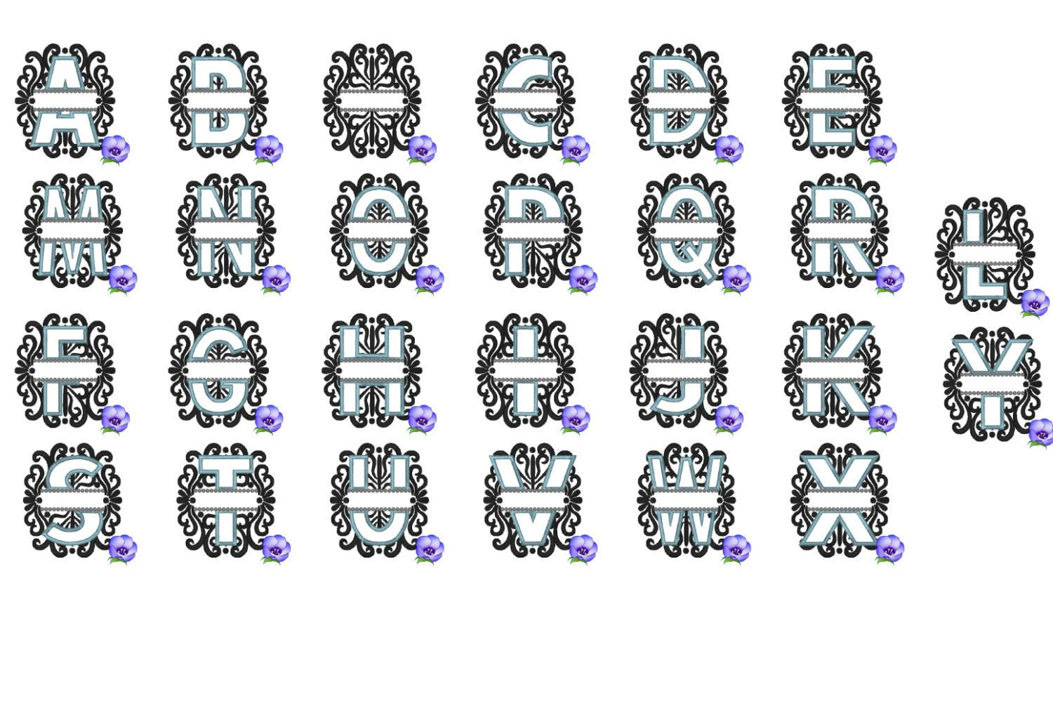 Discount - 40% Ornamental swirl and curl Split Monogram whole set and mini font - machine embroidery monogram designs 4x4 and 5x7, 6x10 Split monogram letter is an applique