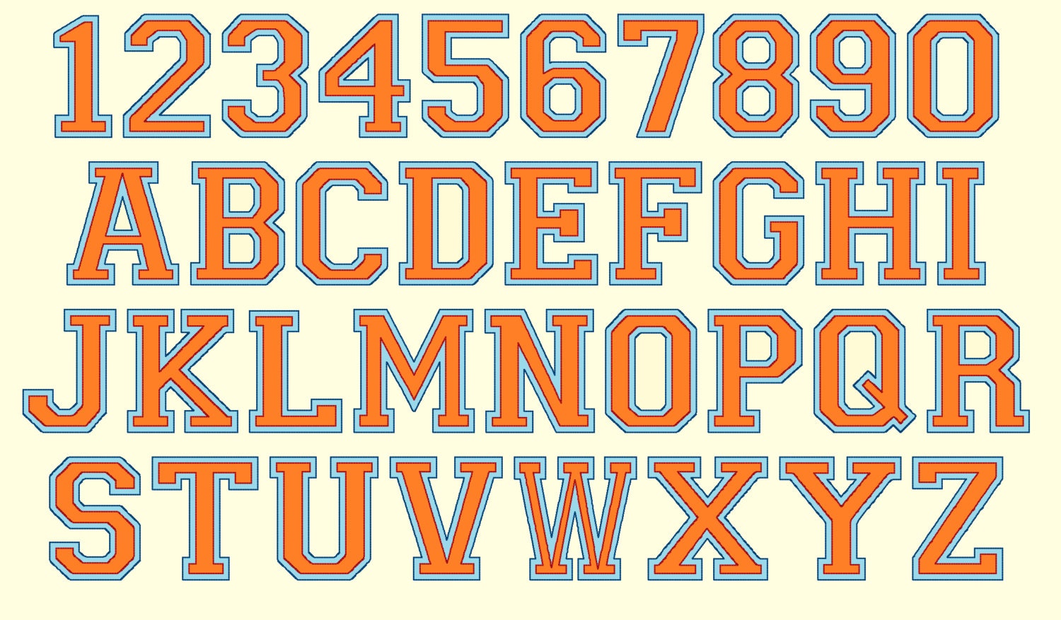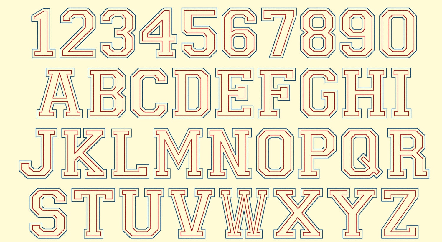 Athletic Sport collegiate Team Players embroidery bean-stitch font bean-stitch outline designs Numbers and Capital letters