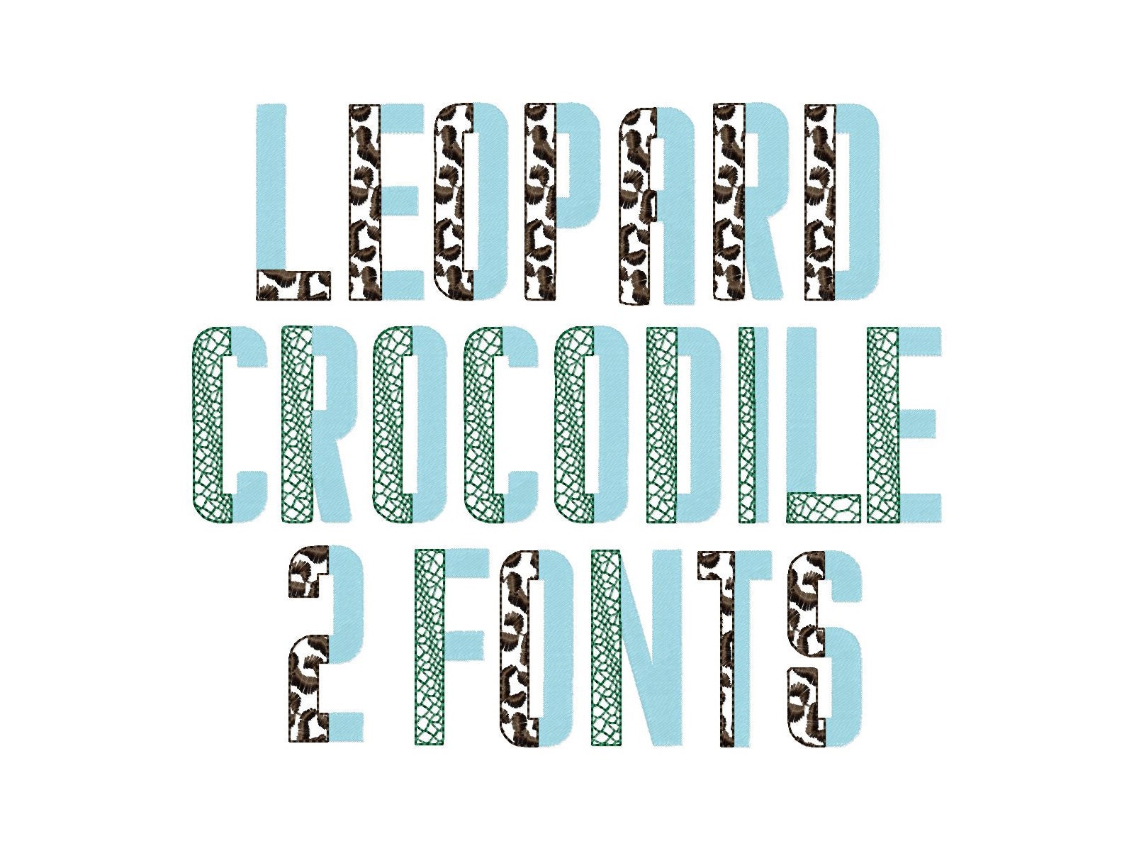 Duo Split Font SET of 2 Wild Leopard and Crocodile two colors alphabet machine embroidery designs duotone block fill stitch monogram +BX