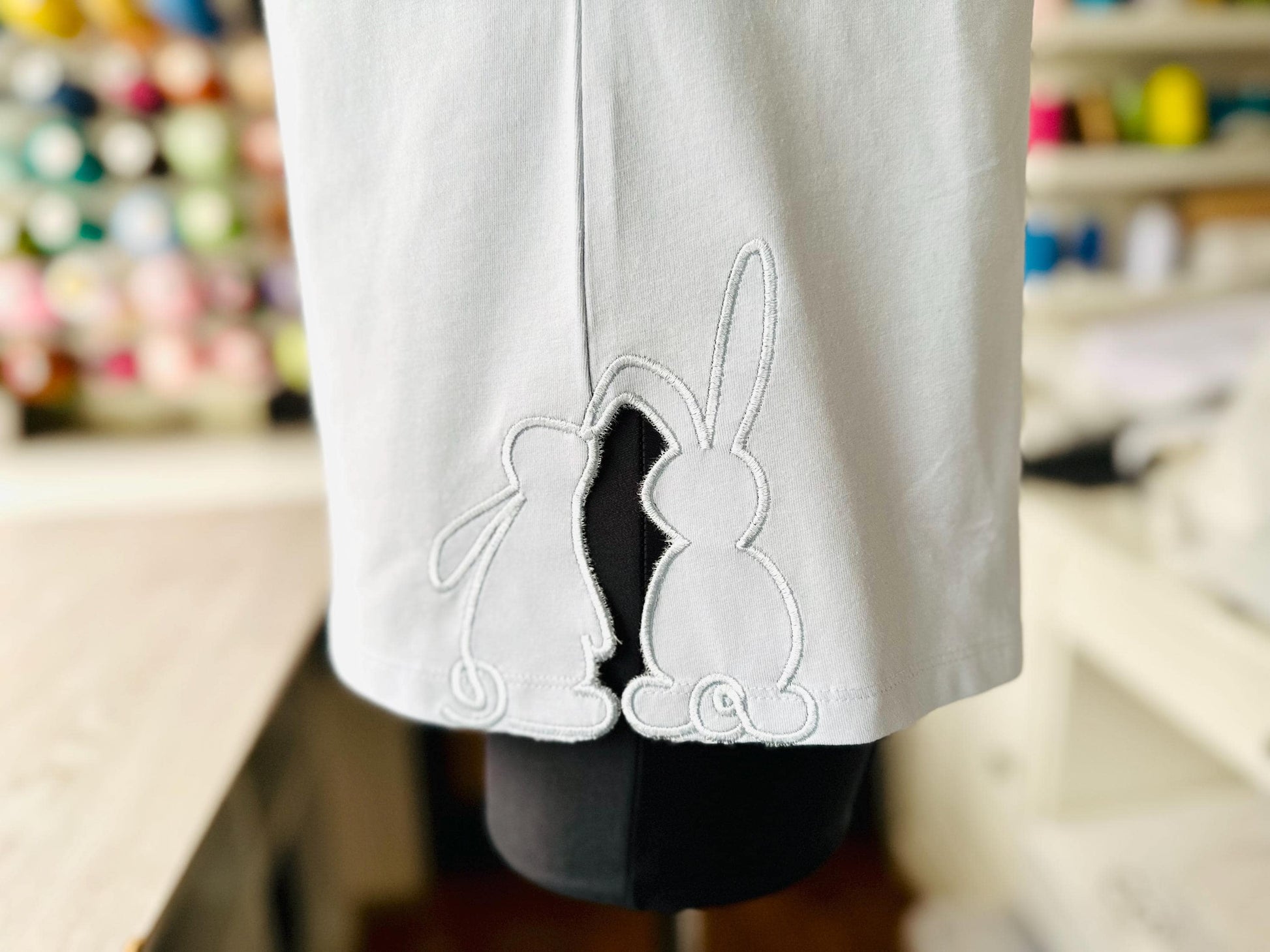 Easter Bunny two Bunnies split side seam cutout Side Bow Applique machine embroidery designs Trendy Farm animal tshirt sweatshirt embroidery