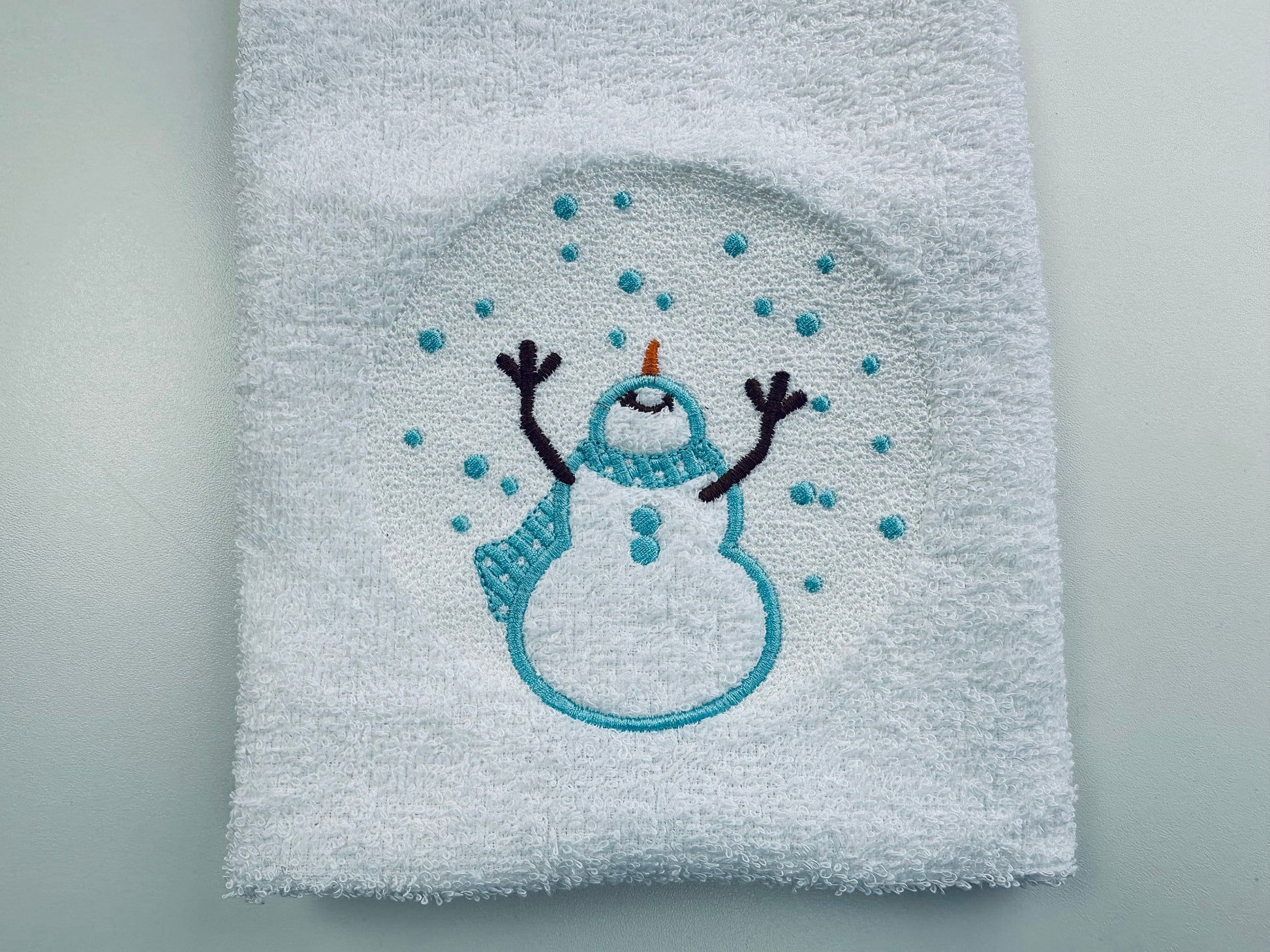 Embossed Terry Towel Snowman circle design machine embroidery designs for hoop 4x4 and 5x7 Merry Christmas gift idea winter holidays Hoops