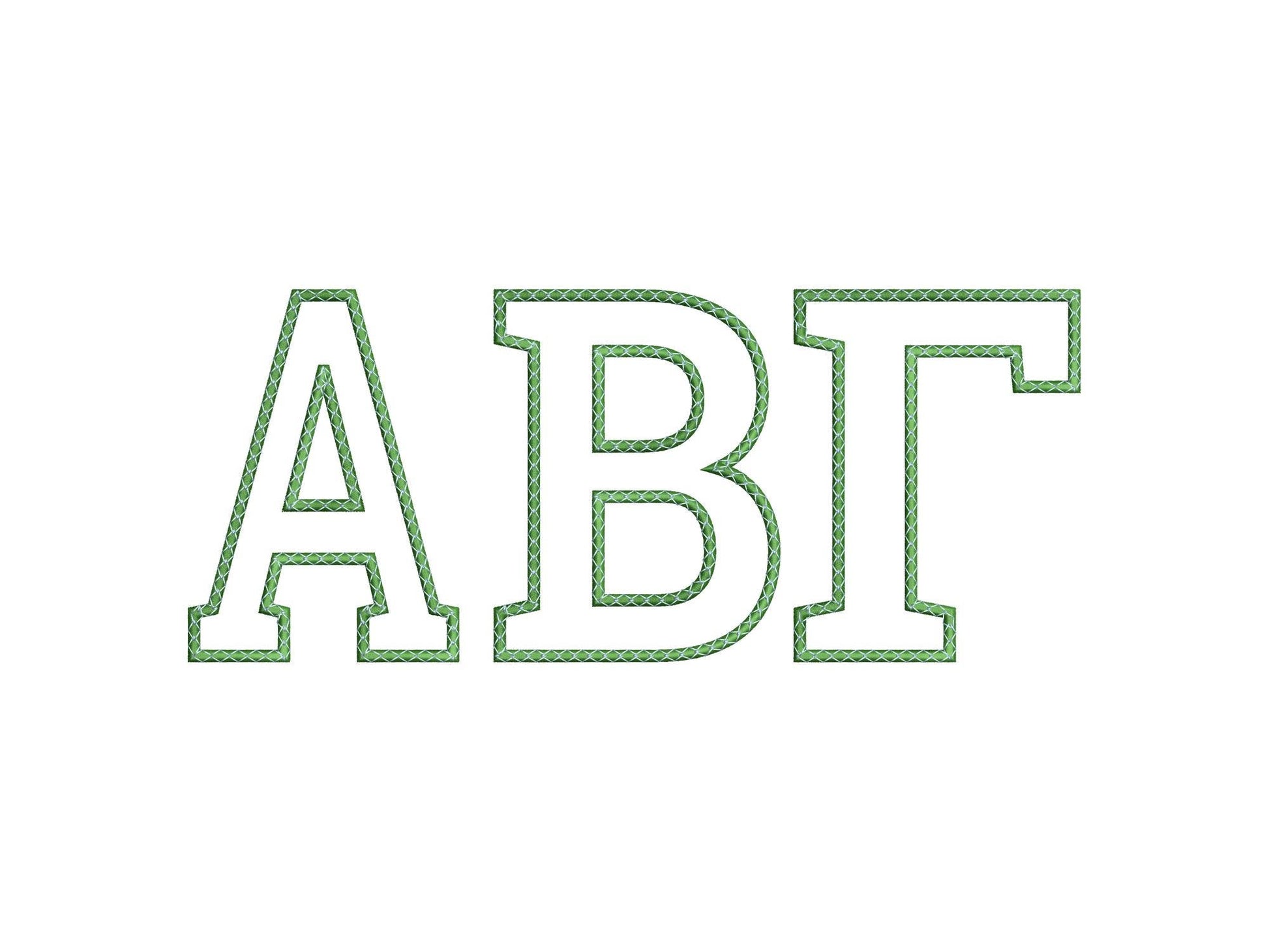Entire alphabet Big Greek FONT Applique satin stitch and top stitch Monogram sororities fraternities machine embroidery designs 4 up to 8in