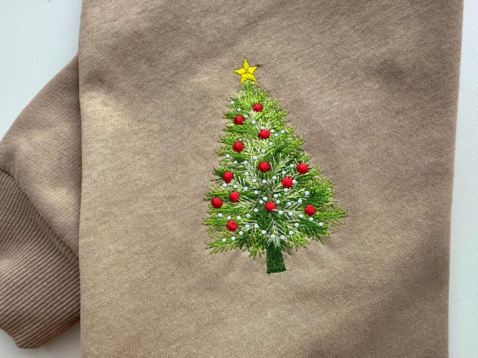 Extra fluffy vintage Classy Christmas tree Christmas lights Holiday Merry Christmas machine embroidery designs size 5, 6, 7 inches Clothing