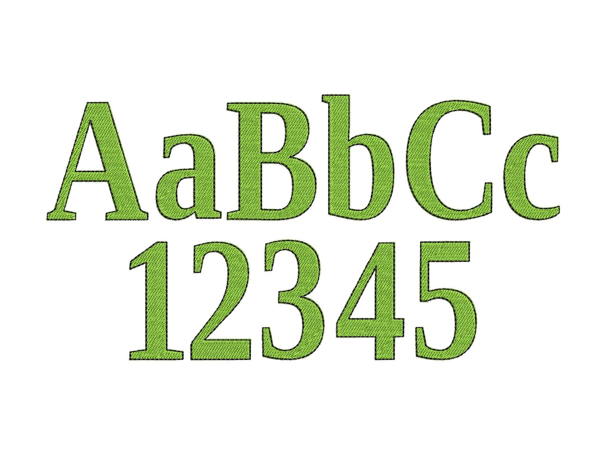 Fill stitch block Font alphabet monogram entire alphabet numbers machine embroidery designs sizes 0.7 up to 3.3 inch fill stitch and outline