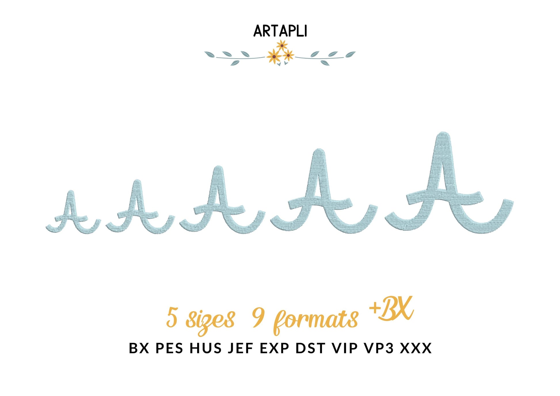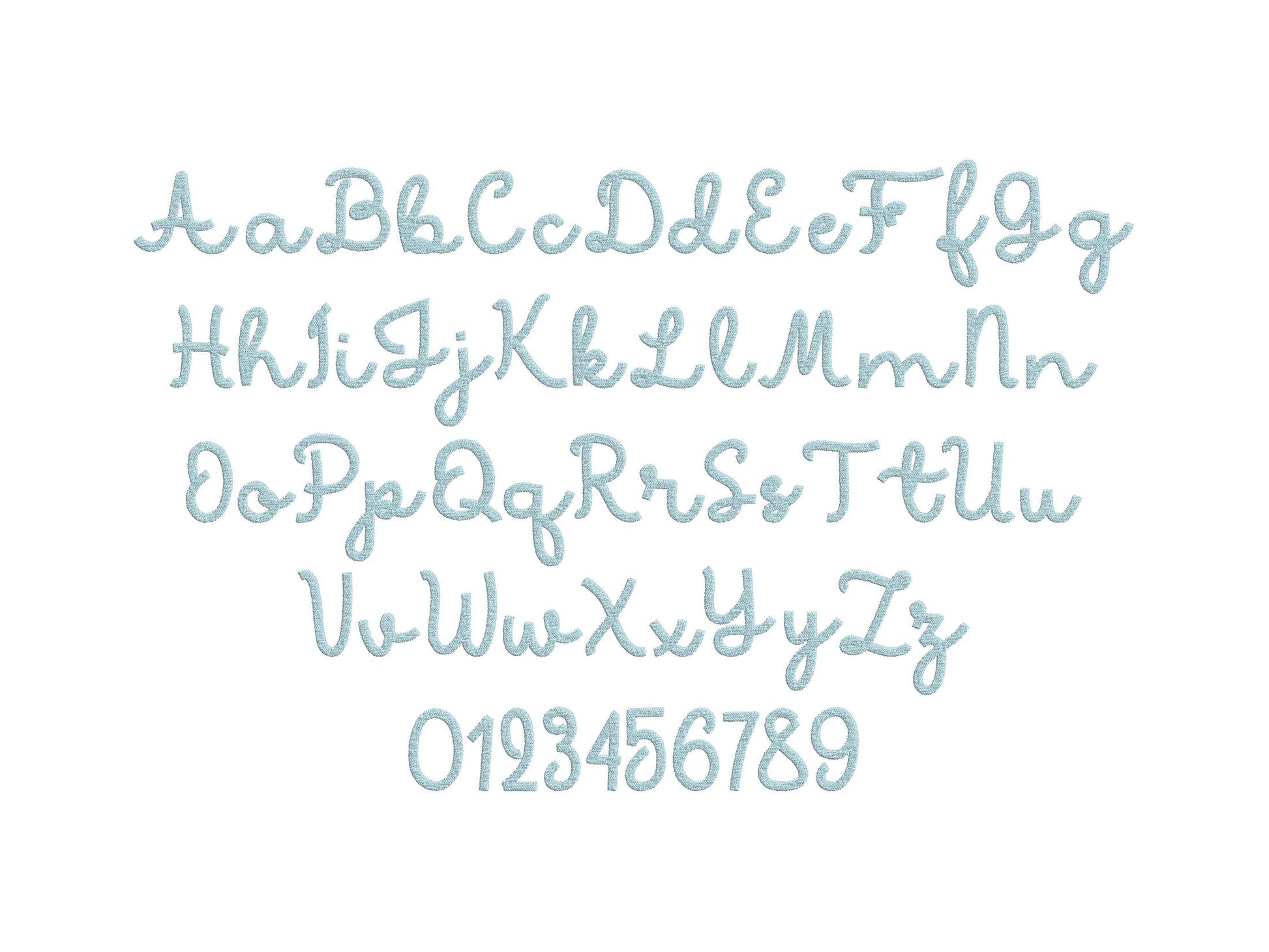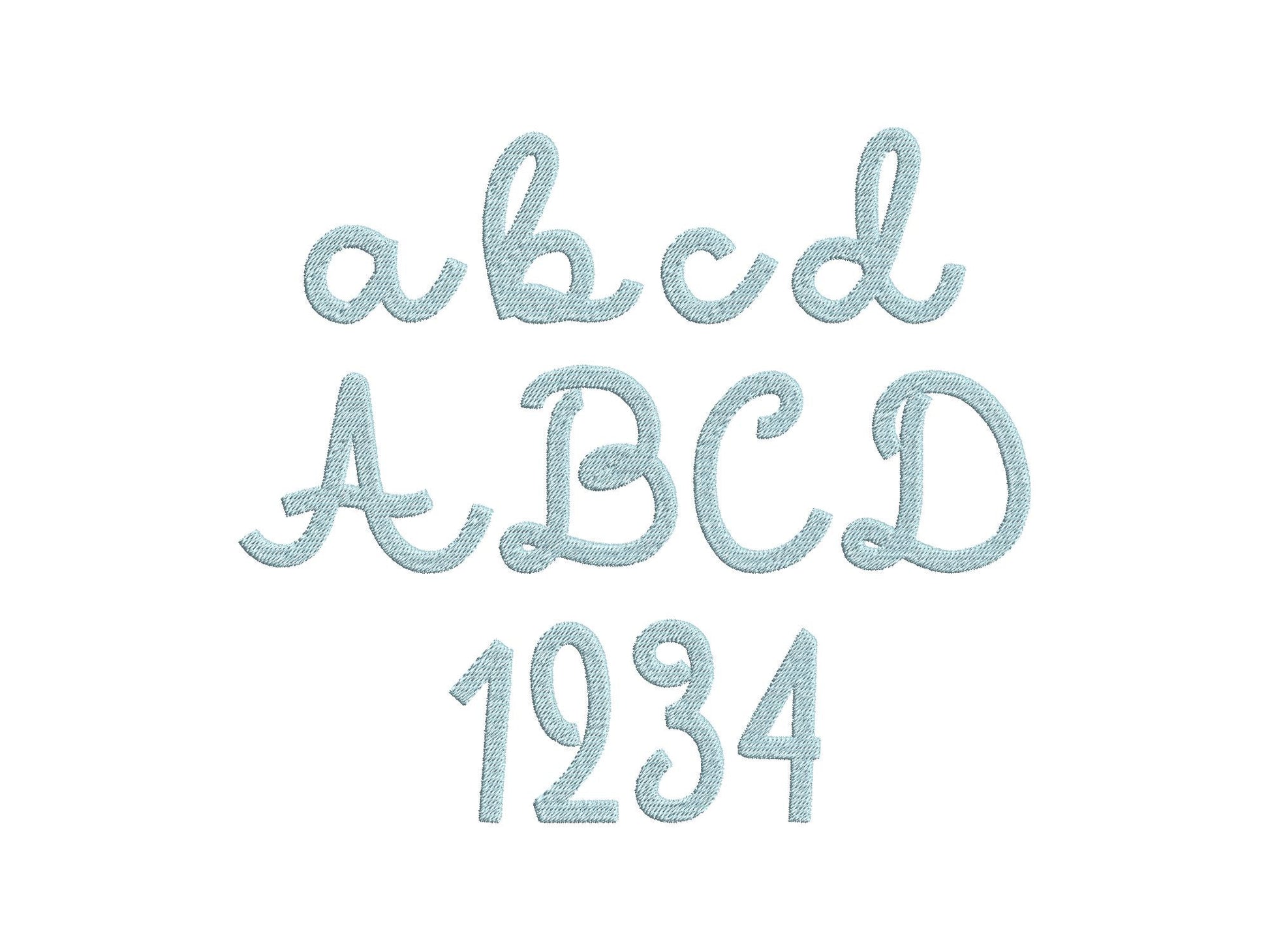 Fill stitch FONT handwritten script alphabet letters numbers kids monogram machine embroidery designs in assorted sizes 1.8 up to 4 inch, BX