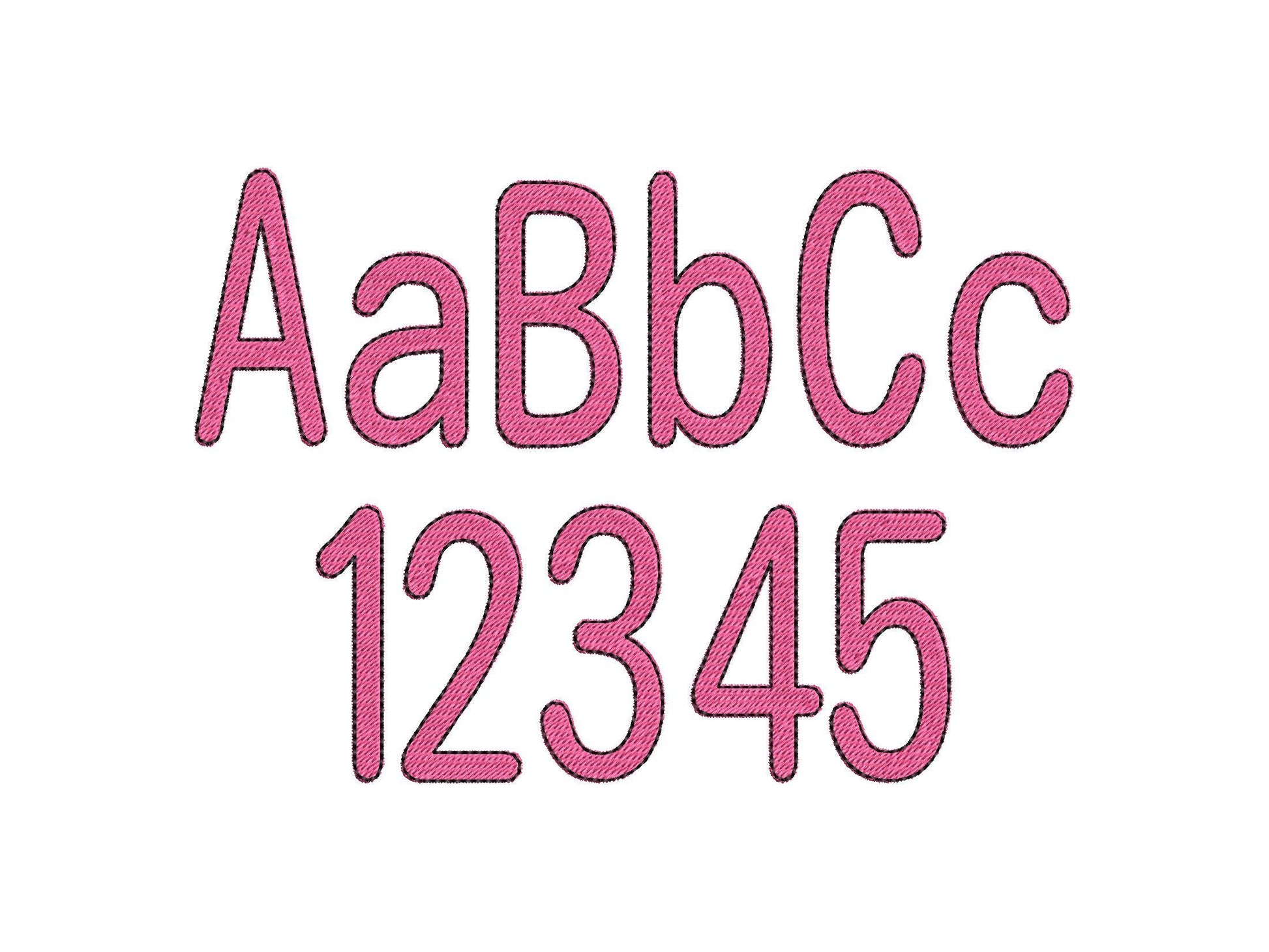 Fill stitch narrow thin Font machine embroidery designs Candy Font alphabet letters numbers sizes 1 up to 3.4 inch fill stitch and outline