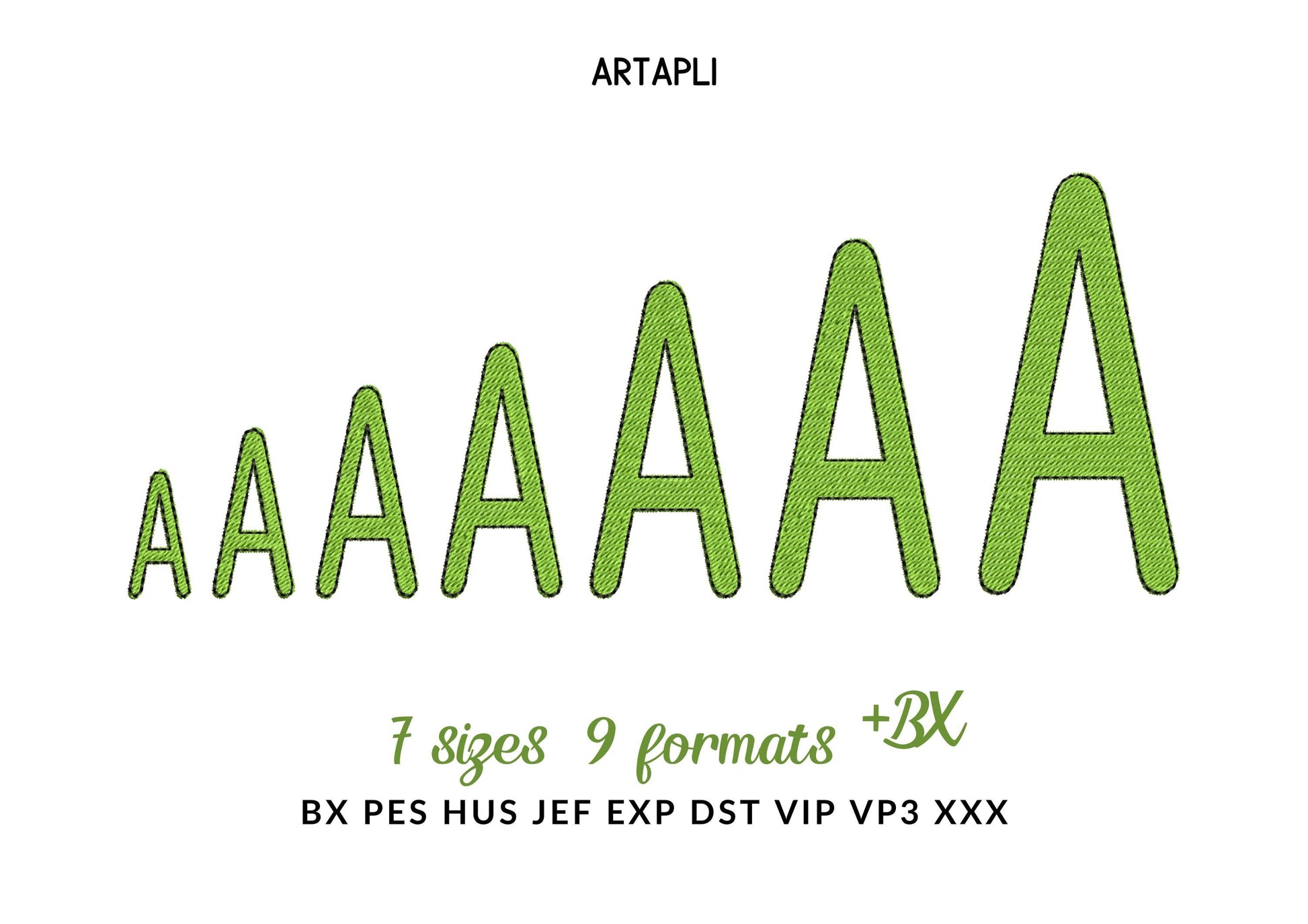 Formats: PES, DST, EXP, VIP, HUS, XXX, JEF, VP3, also BX for fonts and ART available on request.