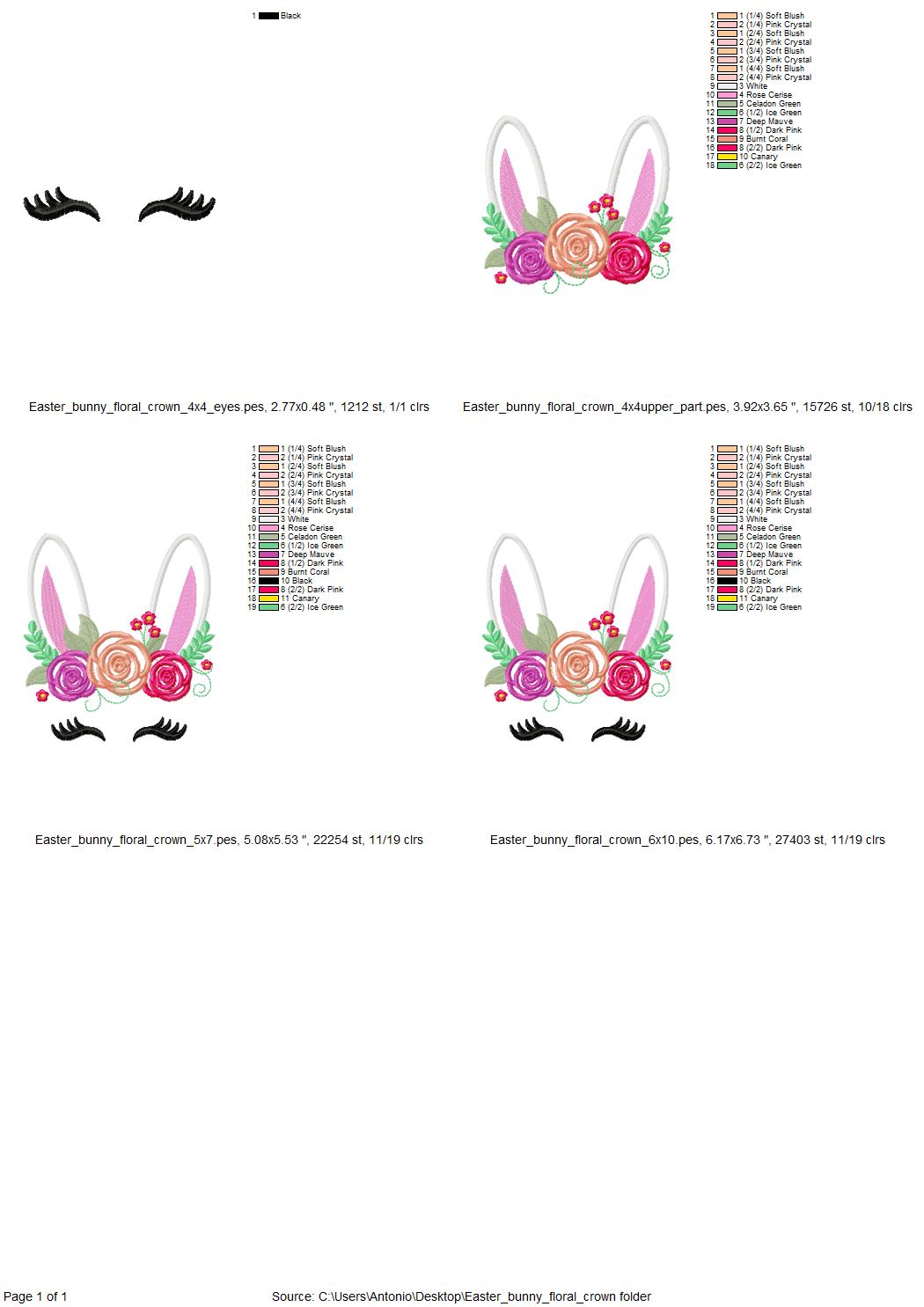 Easter Bunny head ears with shabby chic floral rose crown applique machine embroidery designs Easter bunny pretty eyes kids girls design