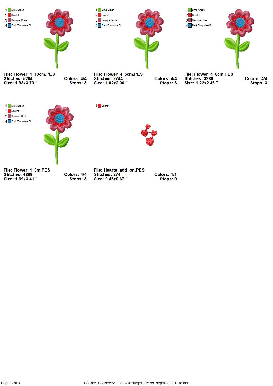 Flower Floral SET of 4 types machine embroidery designs sizes 2 up to 4 inches kids girls baby add-on bee butterfly dragonfly dove daisy