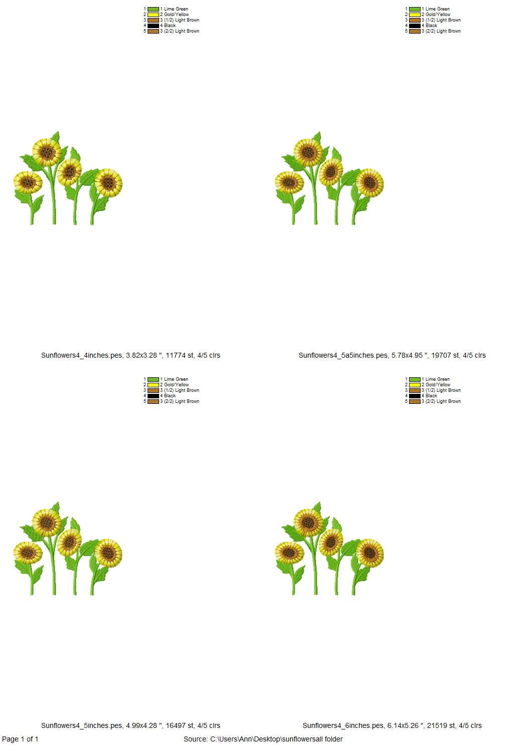 Four Sunflowers 4 Sunflower Stems Embroidery Files Fringed fluffy Flower Fringe simply machine embroidery designs sizes 4 up to 6 inches