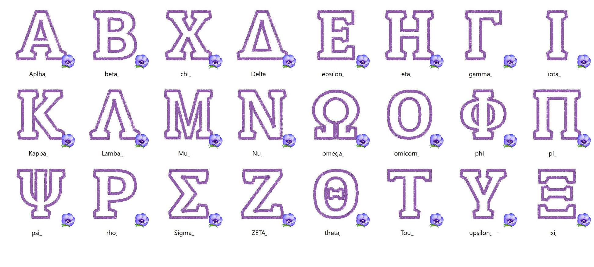 Fraternities and sororities Greek simple font with contrast outline (mini font machine embroidery..