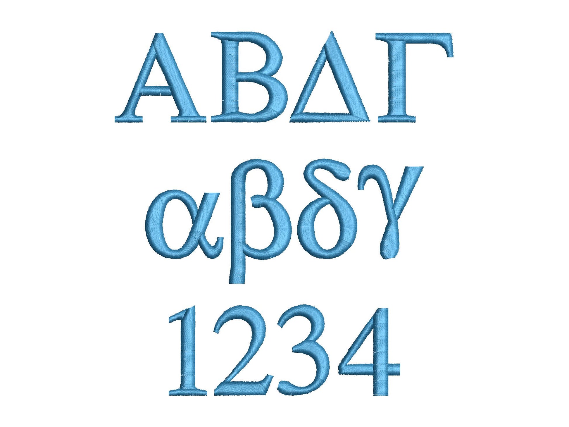 Fraternities and sororities Greek satin stitch mini alphabet ABC theta alpha omega kappa gamma mini font machine embroidery designs and BX