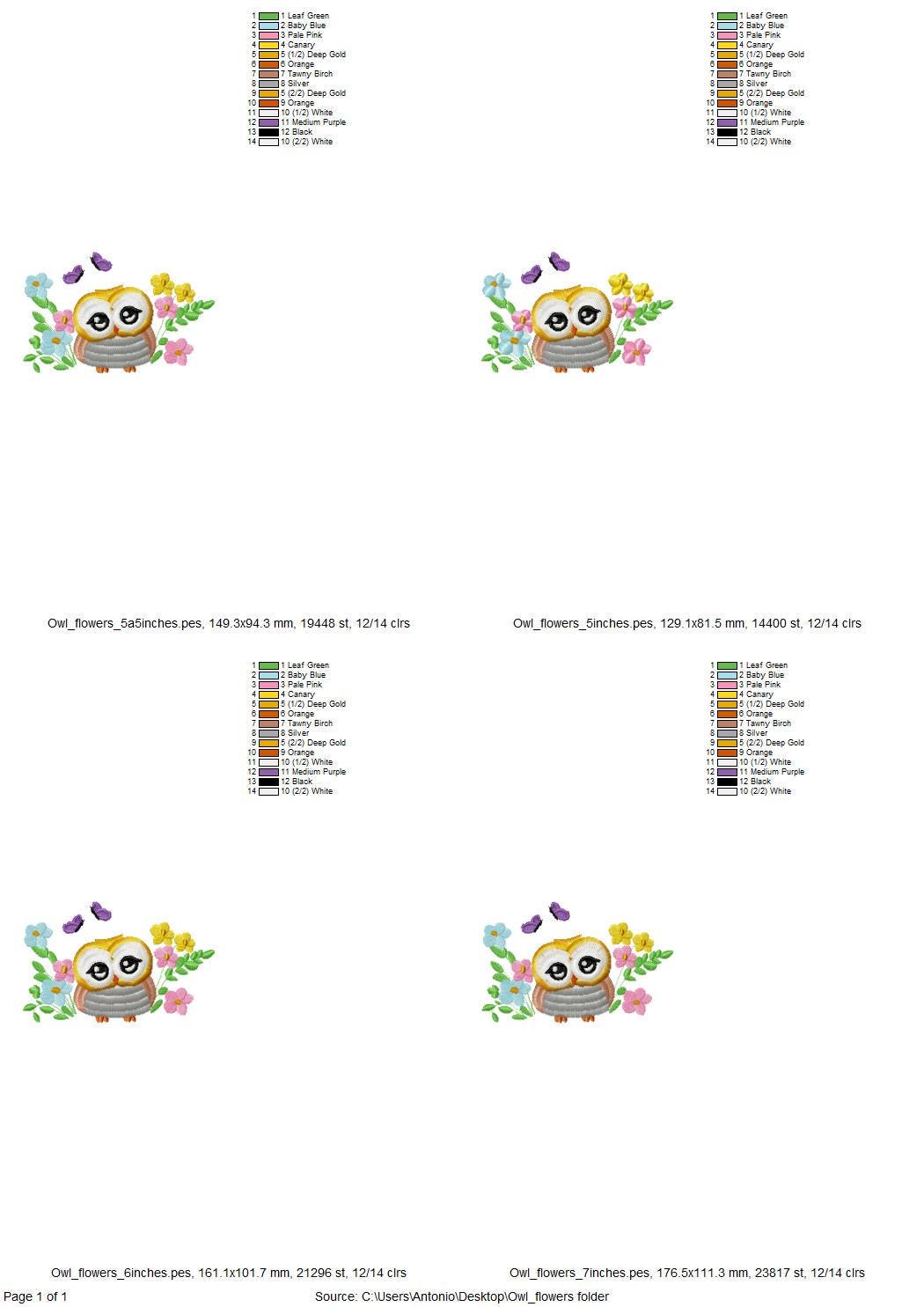 Color charts: PDF or image file with thread colors, stitch order, and counts