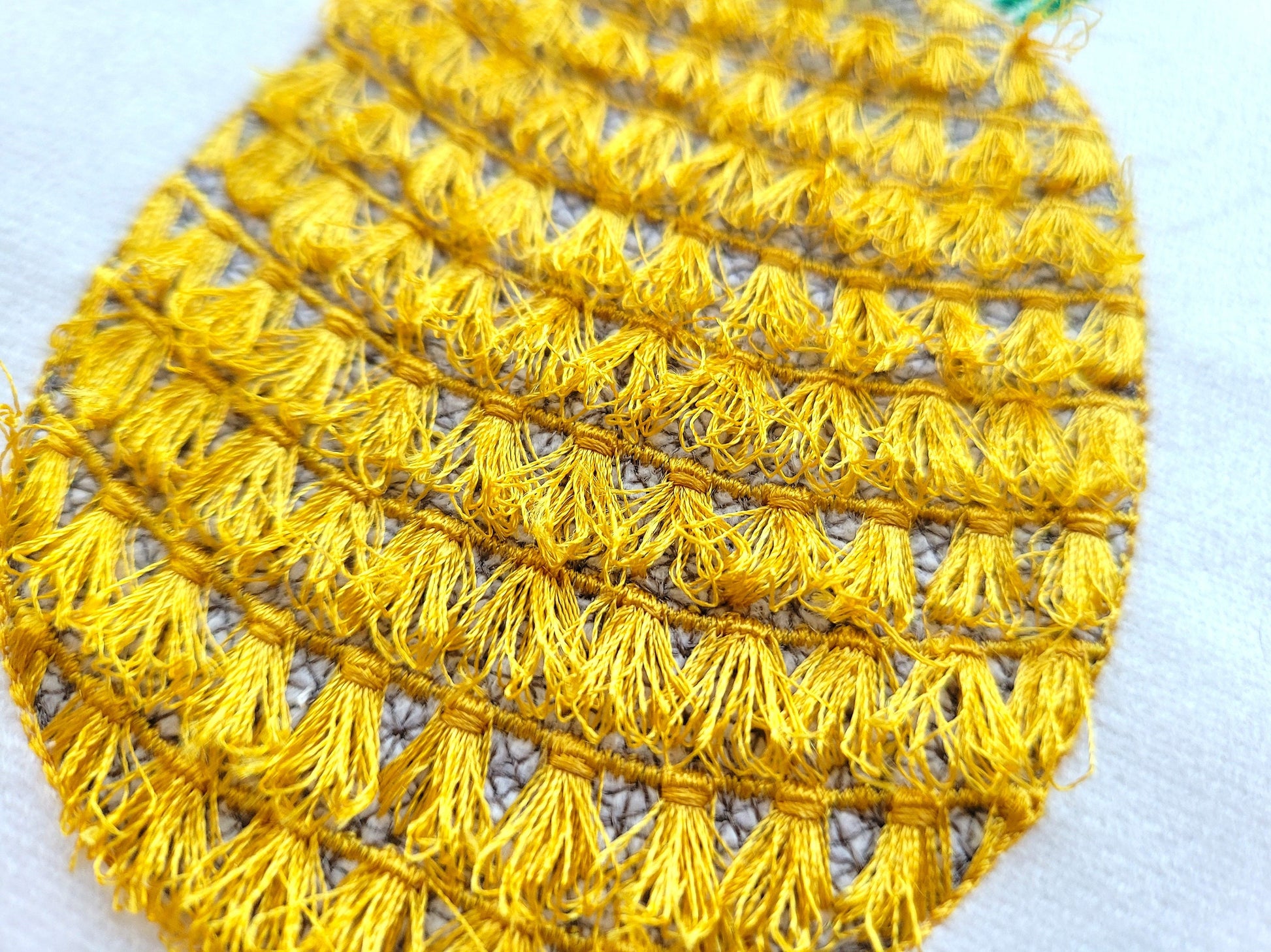 Fringed fluffy chenille summer pineapple fruit machine embroidery designs in many sizes from 4" up to 12" fringe fur ITH project in the hoop