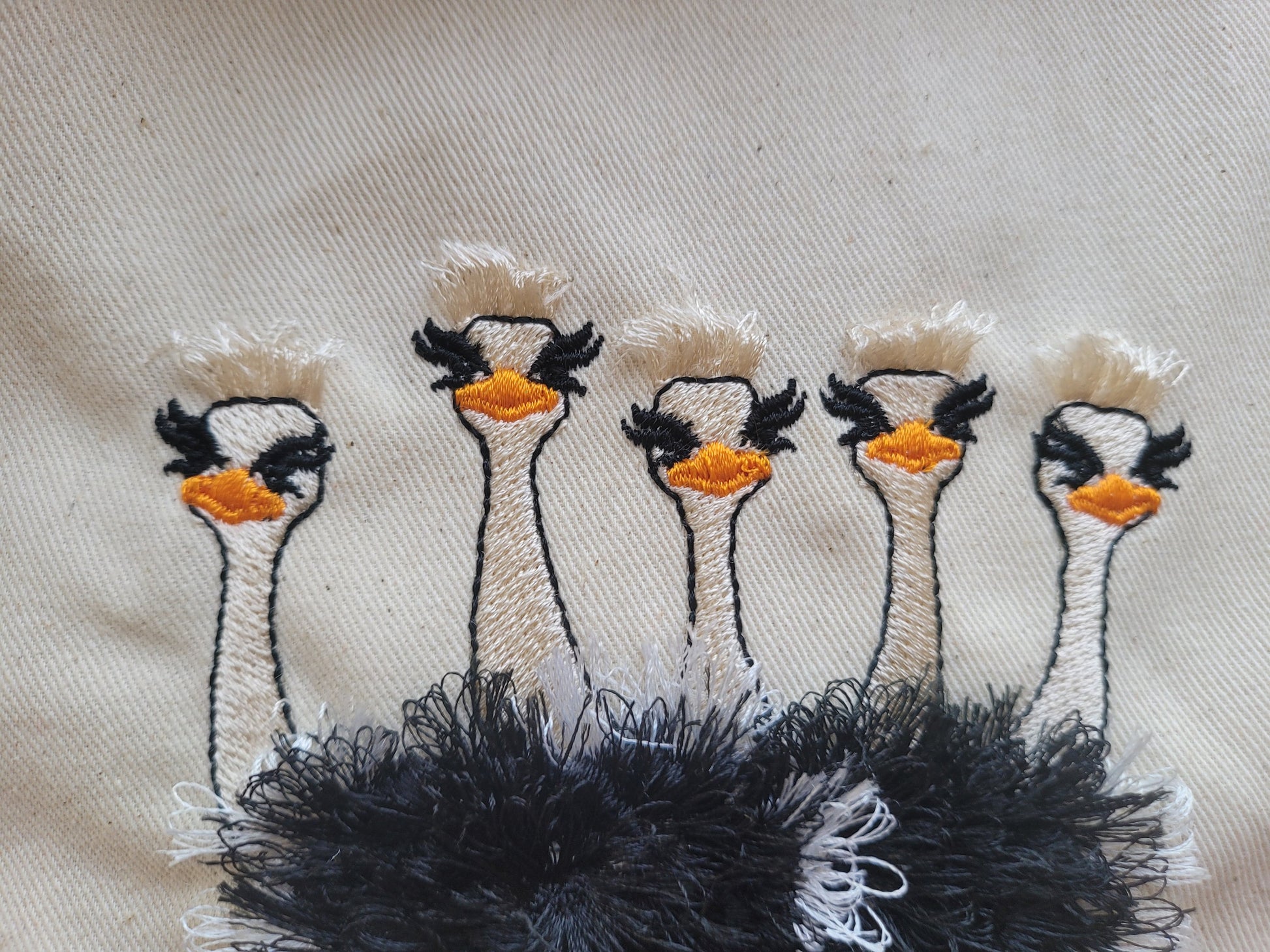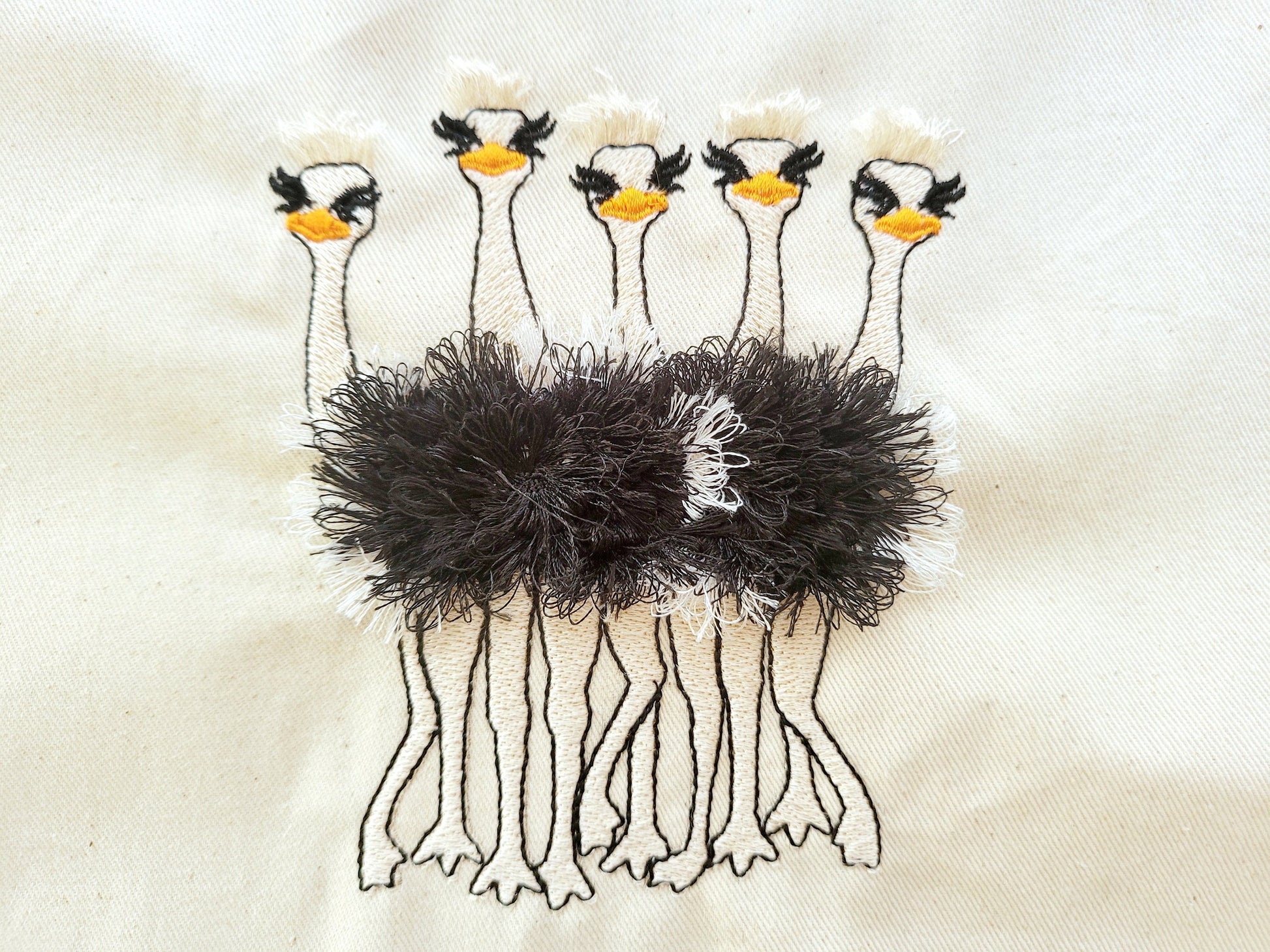 Fringed fluffy flock of 5 ostriches group of ostriches machine embroidery designs for hoop 5x7 6x10 awesome fringe ostrich in the hoop ITH