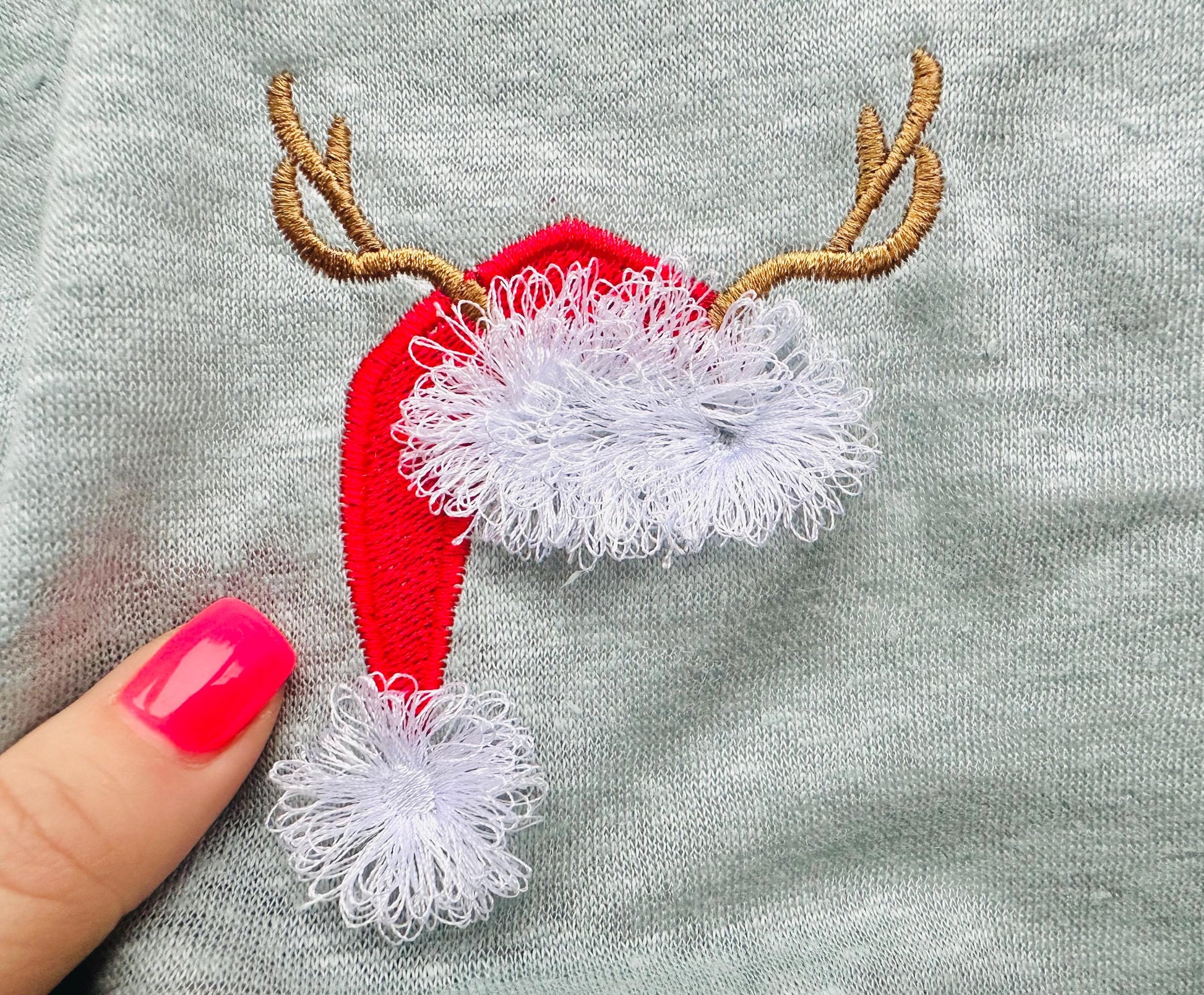 Fringed Fluffy Santa Hat and Deer Antlers Merry Christmas machine embroidery designs Decoration fringe chenille fur kids sizes 2.5 up to 4in