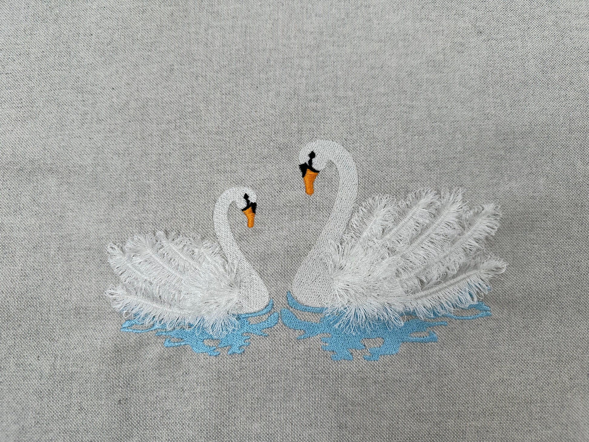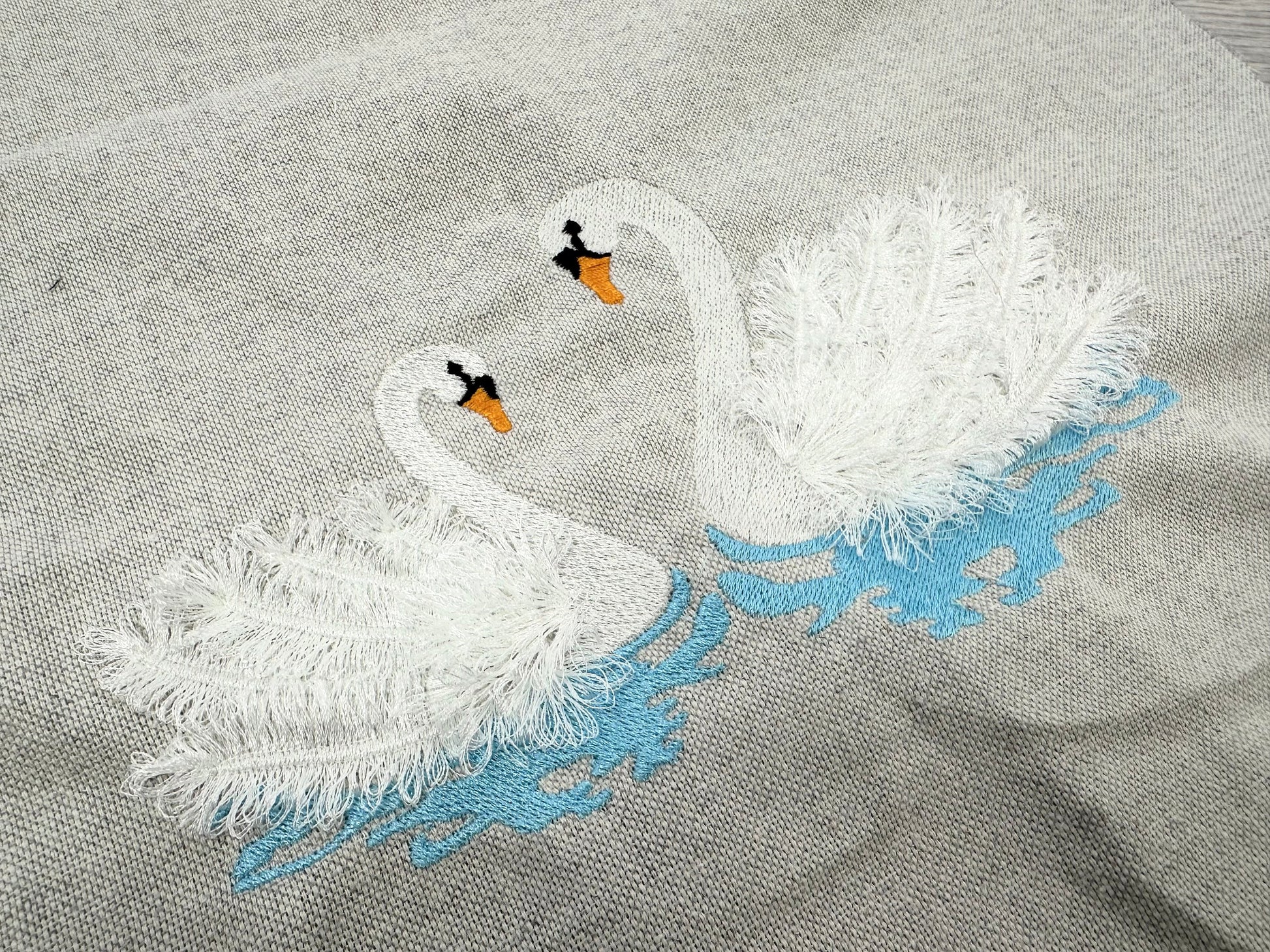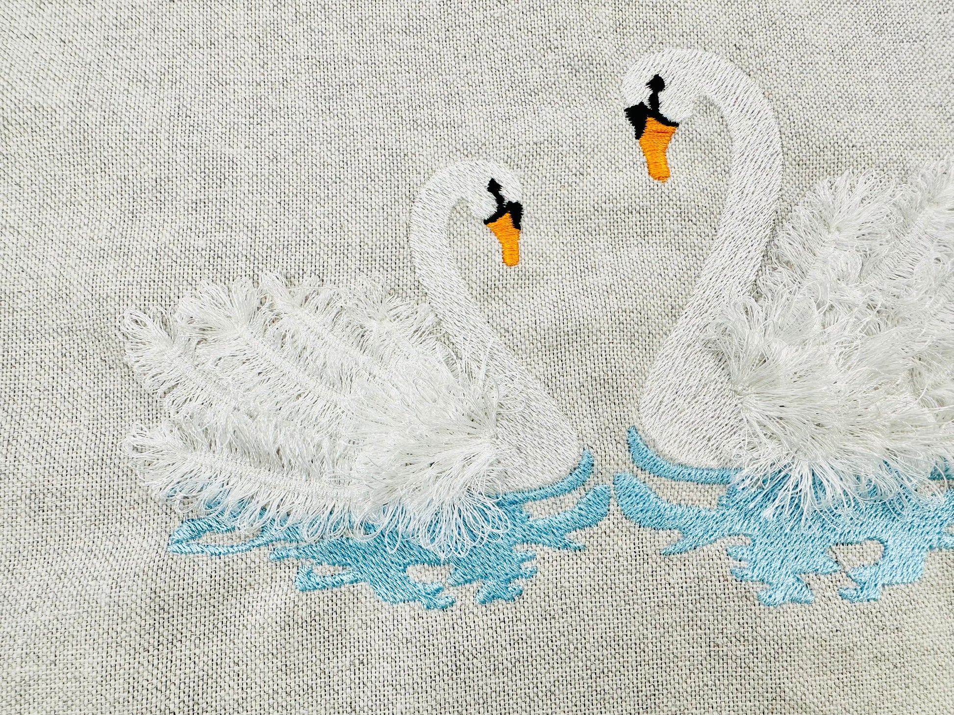 Fringed fluffy Swan machine embroidery designs for hoop 4x4 5x7 awesome fringe swan bird fringe in the hoop ITH fuzzy kids sweatshirt idea