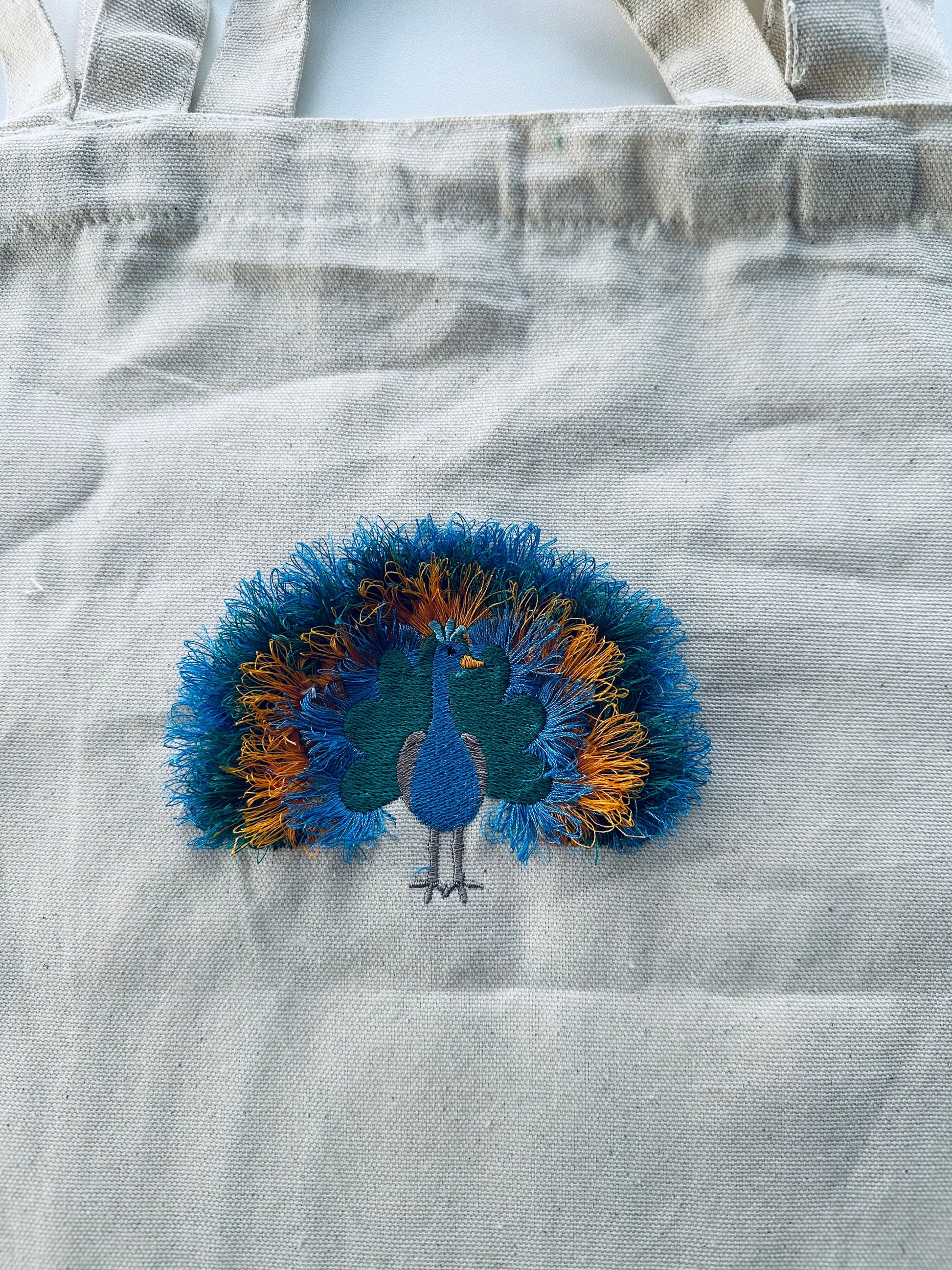 Fringed Peacock fluffy chenille bird machine embroidery designs awesome bird fringe ITH in the hoop embroidery Peacock Pavo Peafowl design