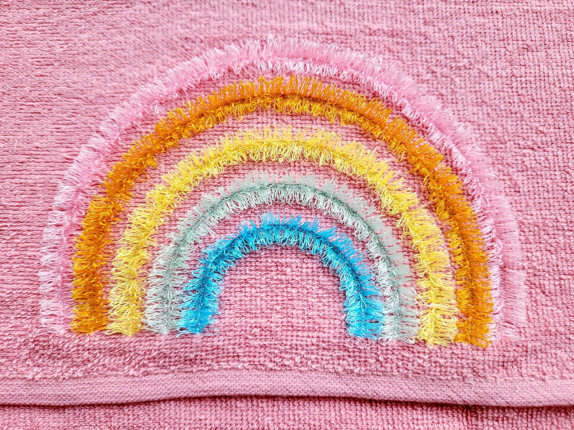 Fringed Rainbow, awesome fluffy Rainbow, fringe in the hoop ITH machine embroidery designs for hoop 4x4, 5x7 kids baby playful funny design