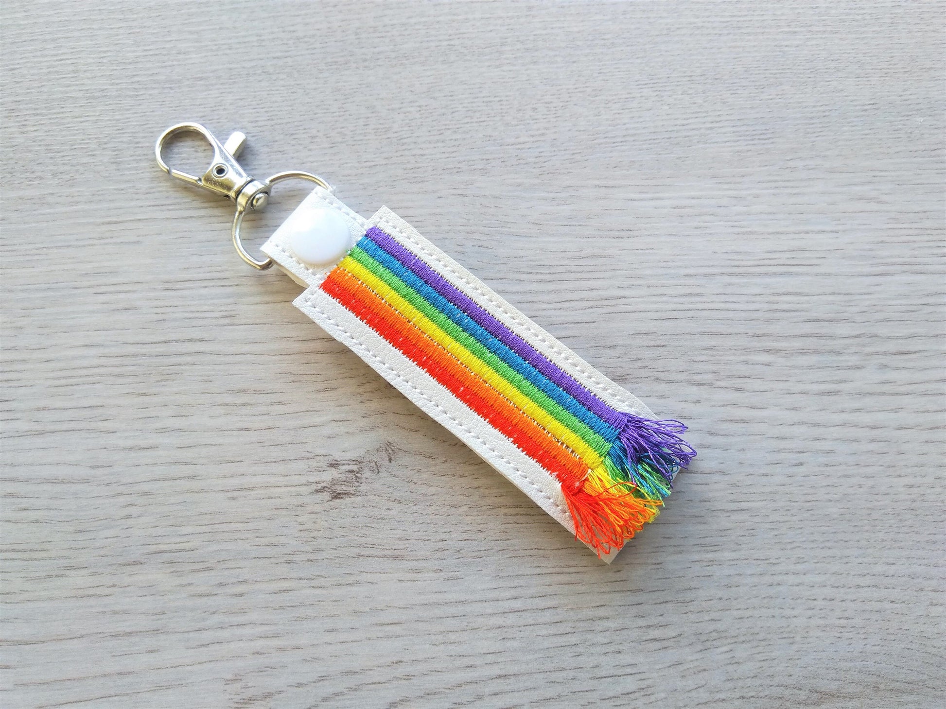 Fringed Rainbow key fob snap tab ITH in the hoop machine embroidery design for hoop 4x4, key chain ITH embroidery project, tutorial included