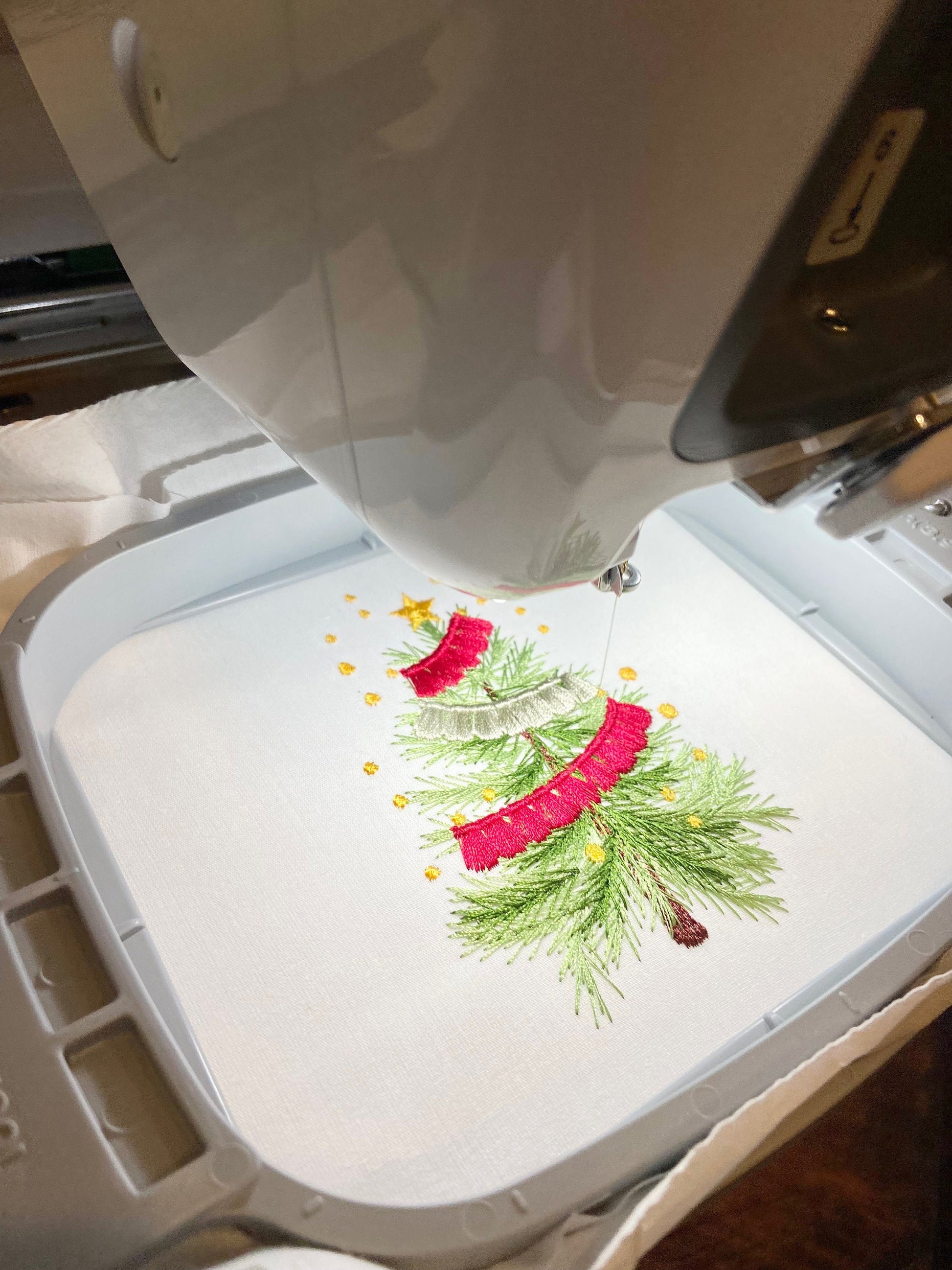 Fringed Tassels awesome fluffy Christmas Tree machine embroidery designs Woodland Spruce with garland fringe in the hoop light stitch design
