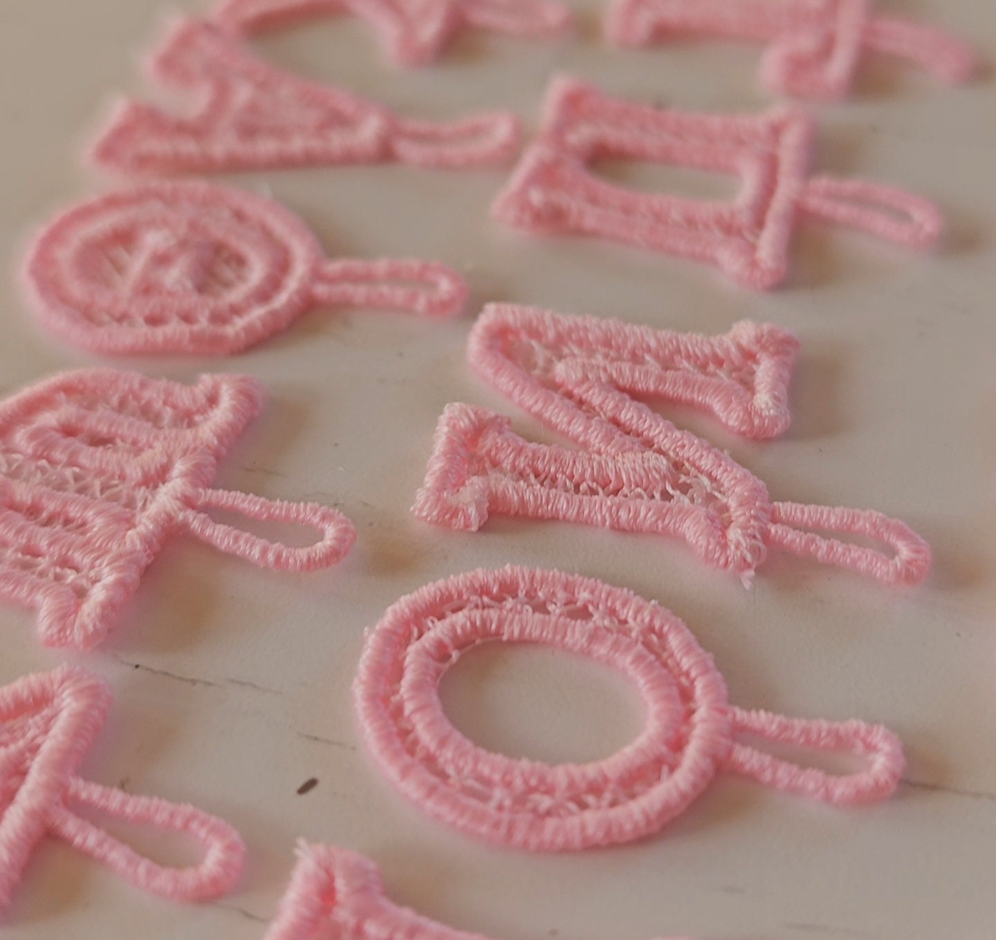 Freestanding lace! I recommend using Vilene or any other fabric-like water-soluble stabilizer (not the clear film type).