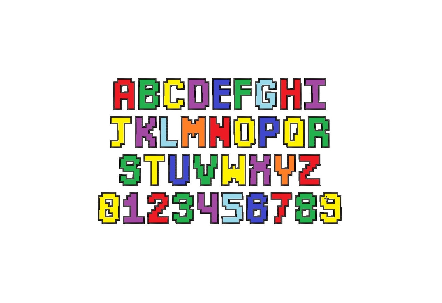 Gamer block font letters A-Z whole alphabet and numbers 0-9 Crewmate kids fun pixel font machine embroidery applique designs, BX included