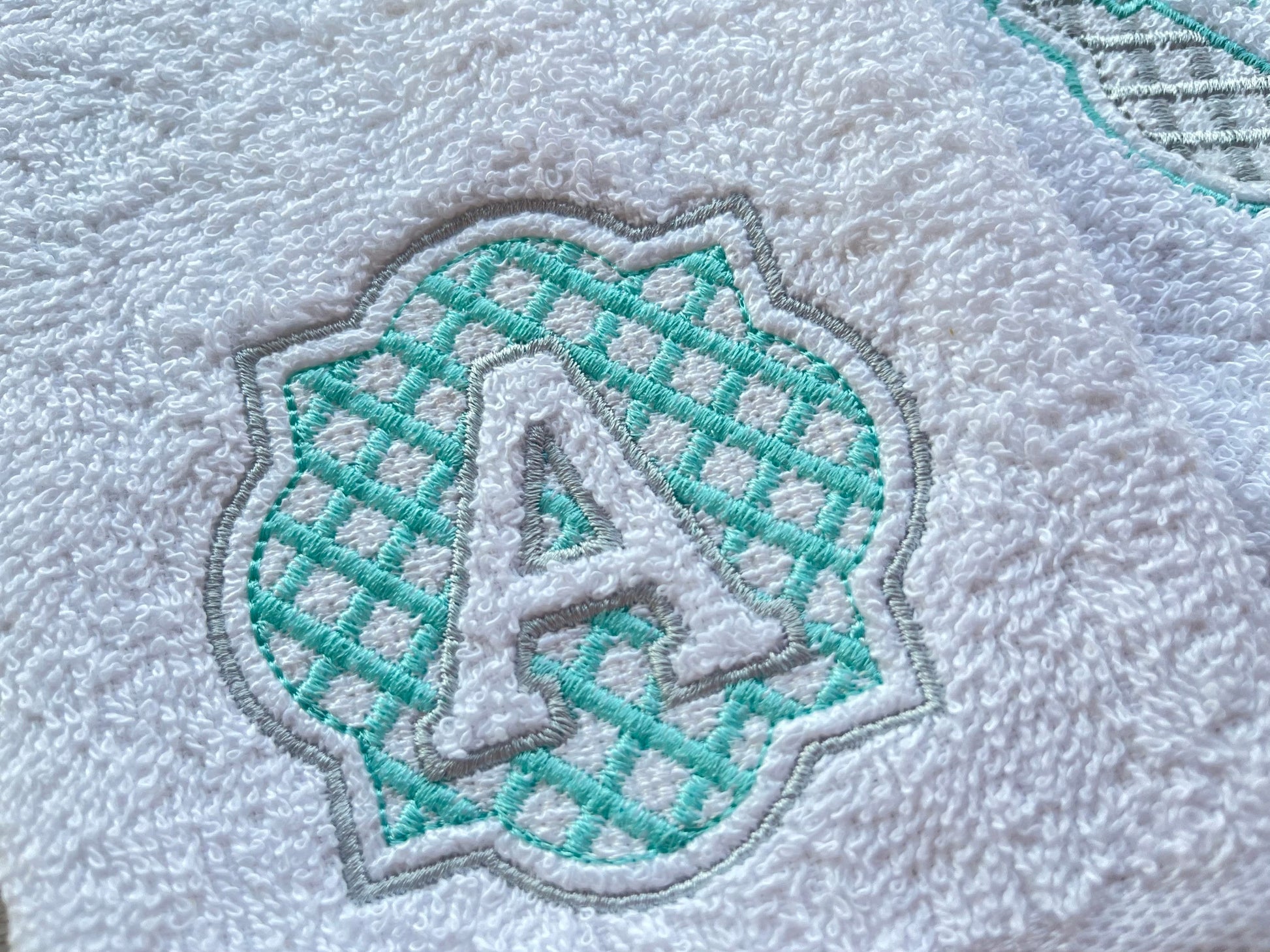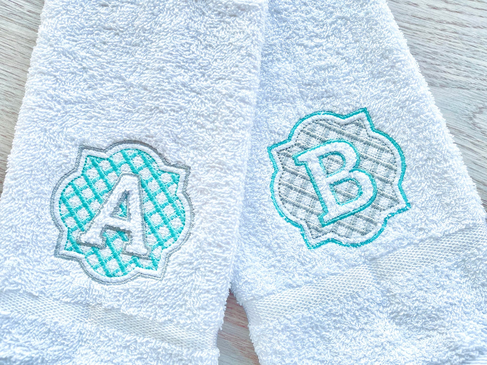 Gingham checkered Beautiful Monogram embossed initial letters A-Z machine embroidery designs for hoop 4x4 & 5x7 wedding personalized gift