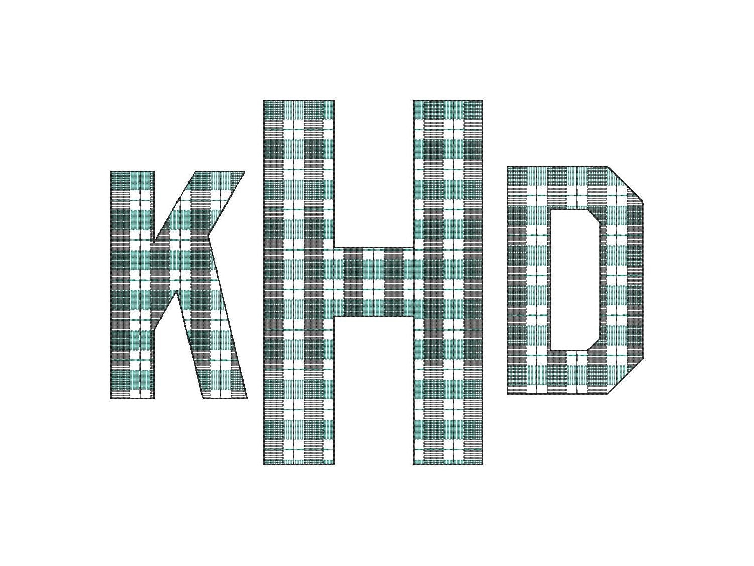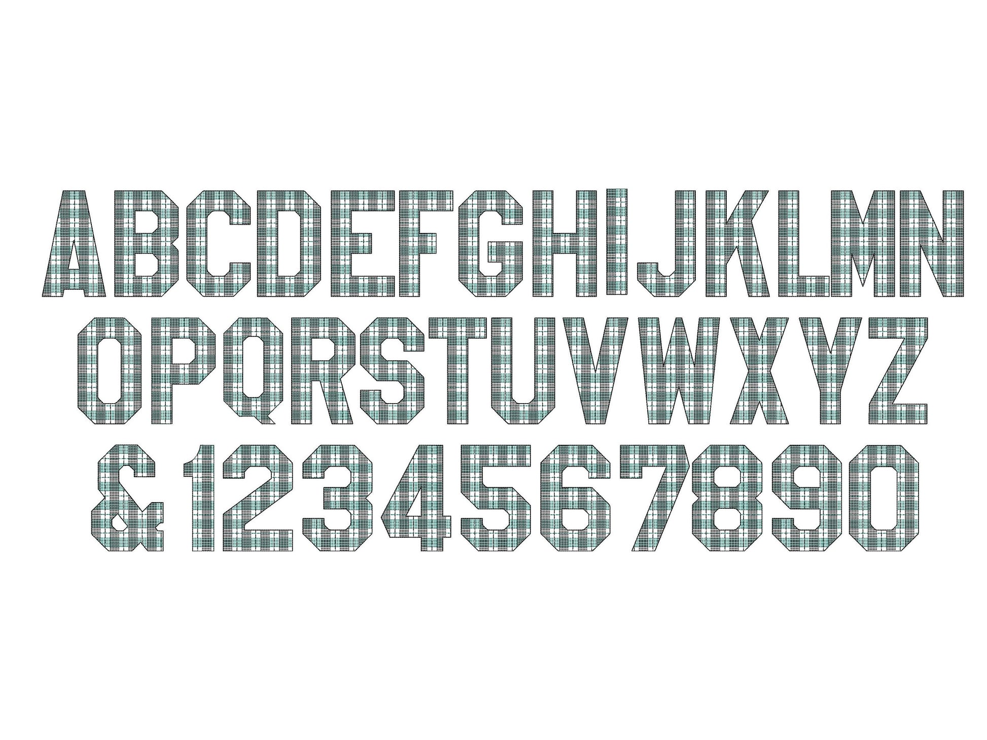 Gingham Sport Font letters and numbers machine embroidery designs many sizes 2, 3, 4, 5, 6, 7in Buffalo Plaid Tartan checkered alphabet, BX