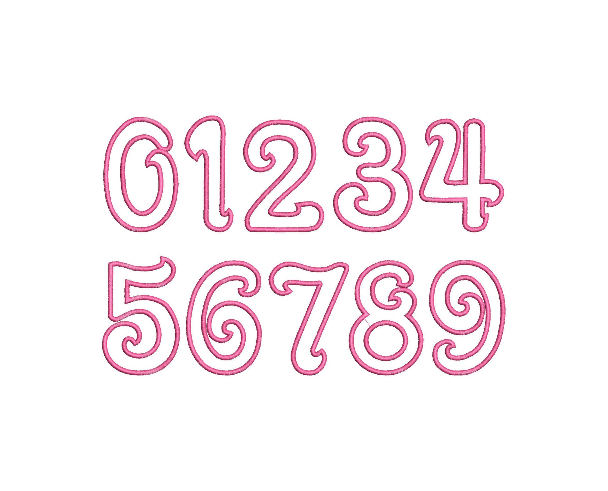 Girly with wide satin stitch Birthday Numbers Applique kids outfit monogram Number machine embroidery designs many sizes 2, 3, 4, 5, 6 inch