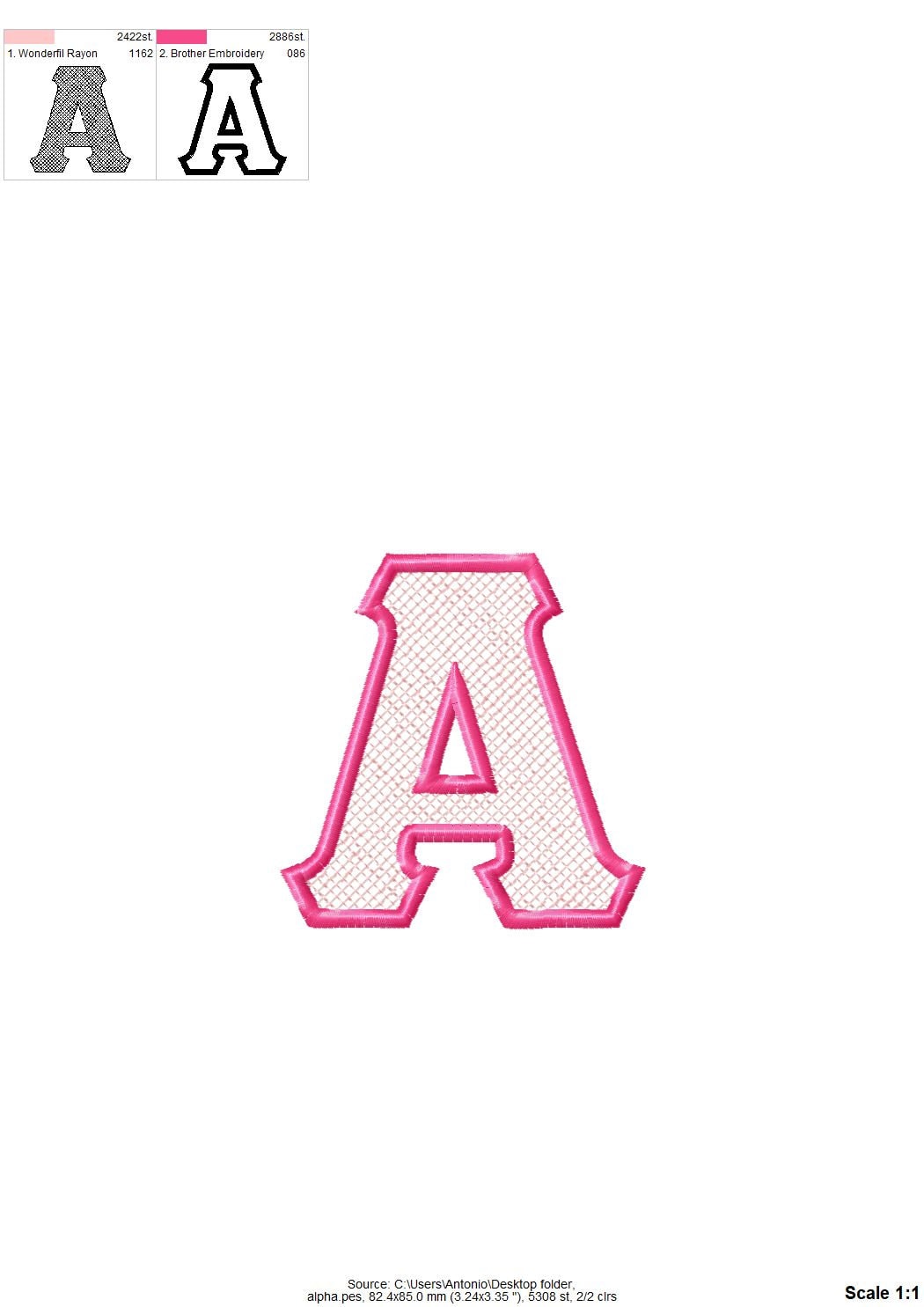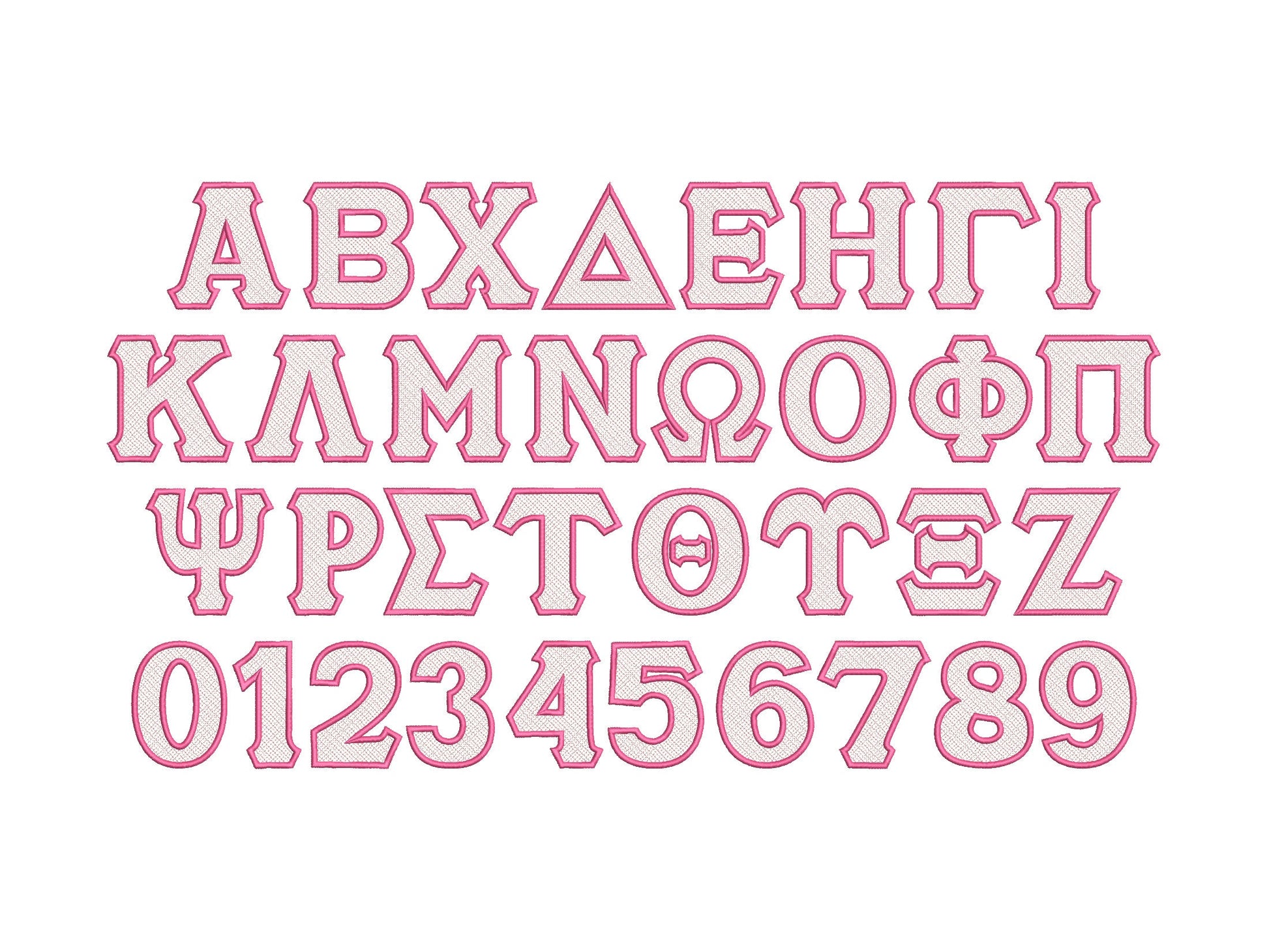 Glitter Greek Font light stitch diamonds and satin stitch outline