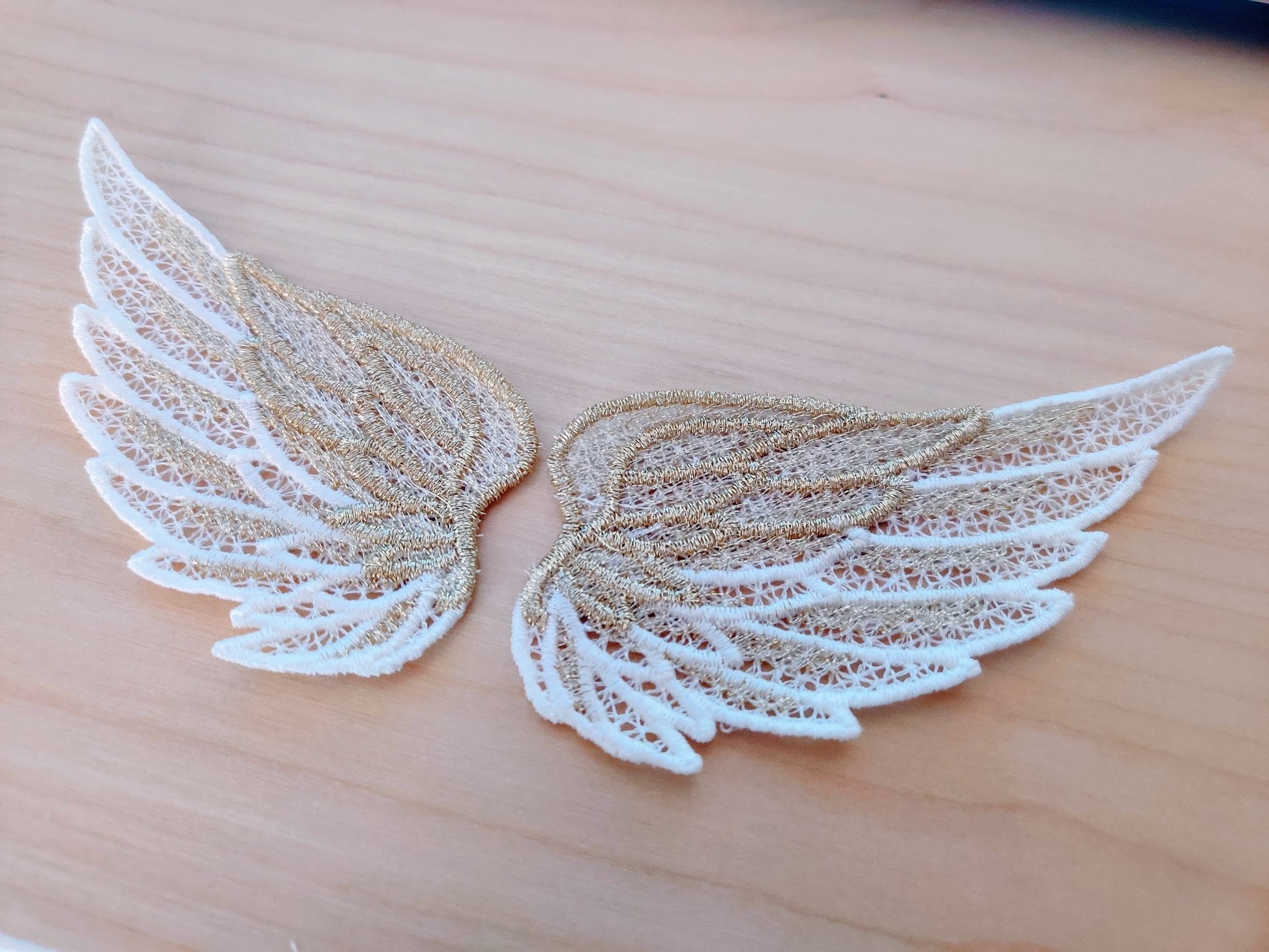 Golden angel lace wings FSL Free standing lace angel wing machine embroidery designs for hoop 4x4, 5x7 assorted sizes fairy wings ornament