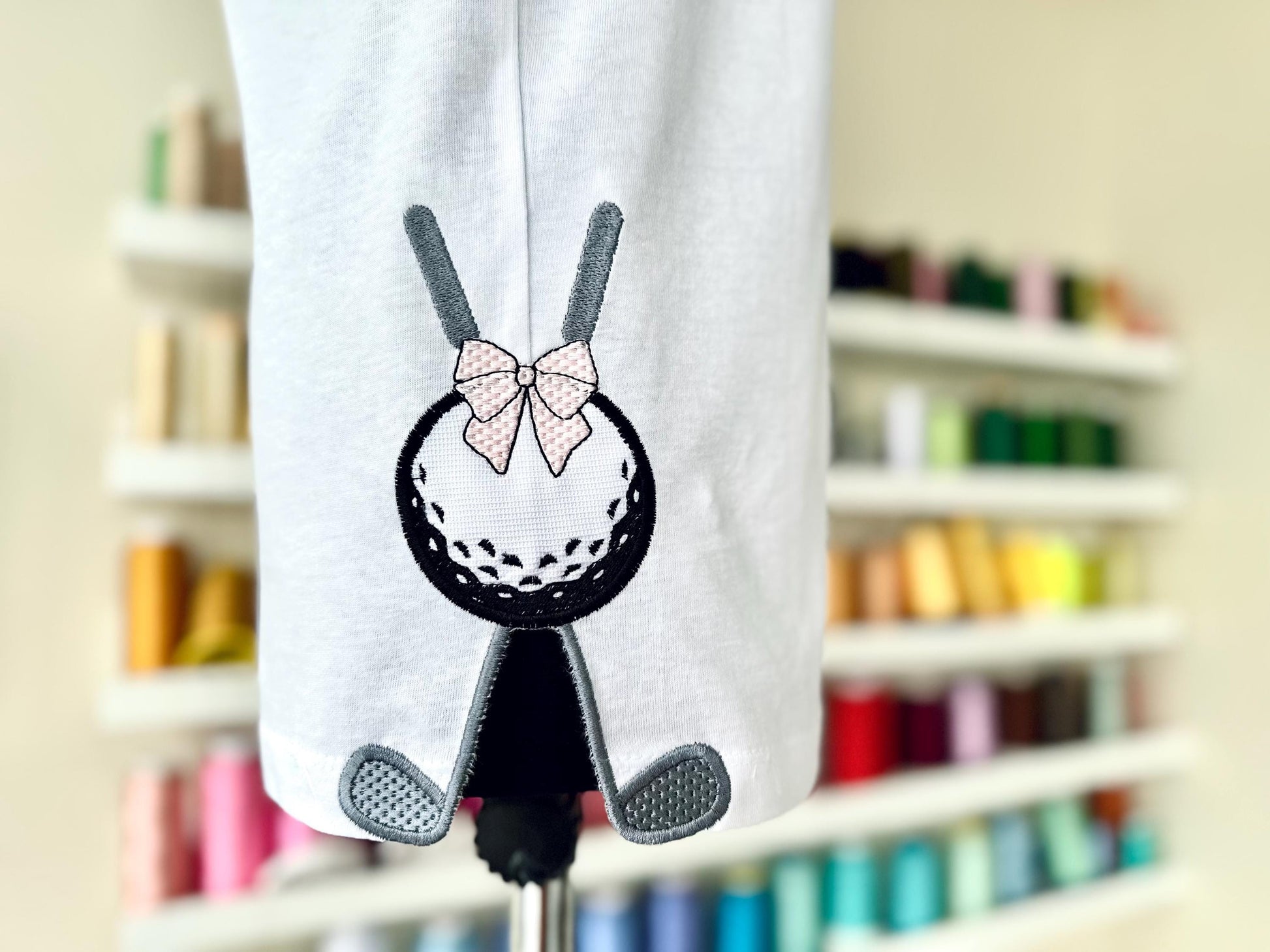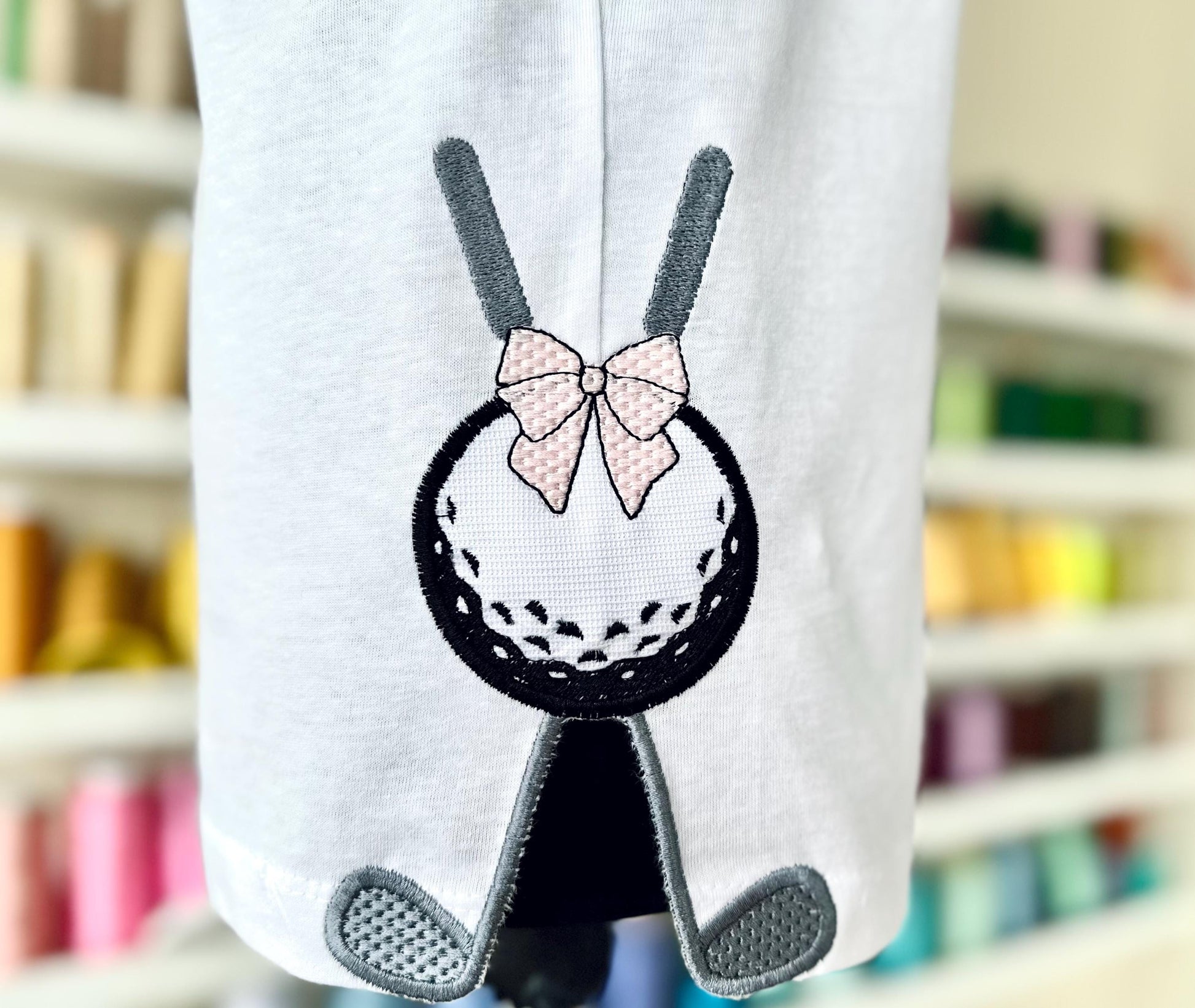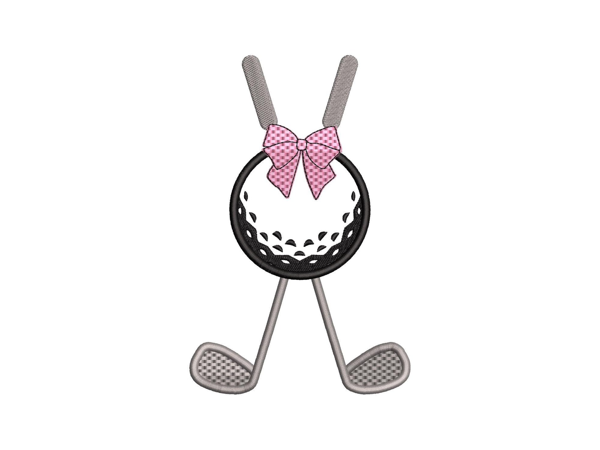Golf Clubs and Ball split seam Girly side Bow Applique sports machine embroidery designs outfit t-shirt sweatshirt design sizes 5 to 8 inch