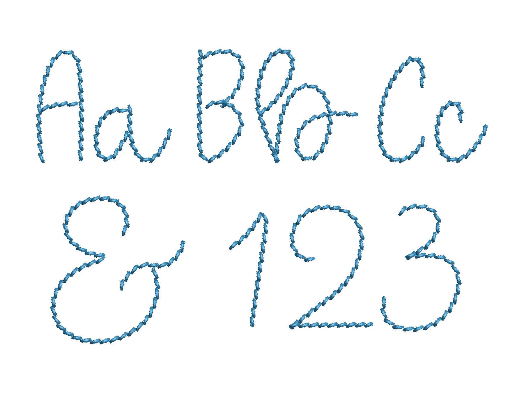 Hand stitch effect FONT step stitch script alphabet letters and numbers machine embroidery designs multiple sizes for kids name or saying BX