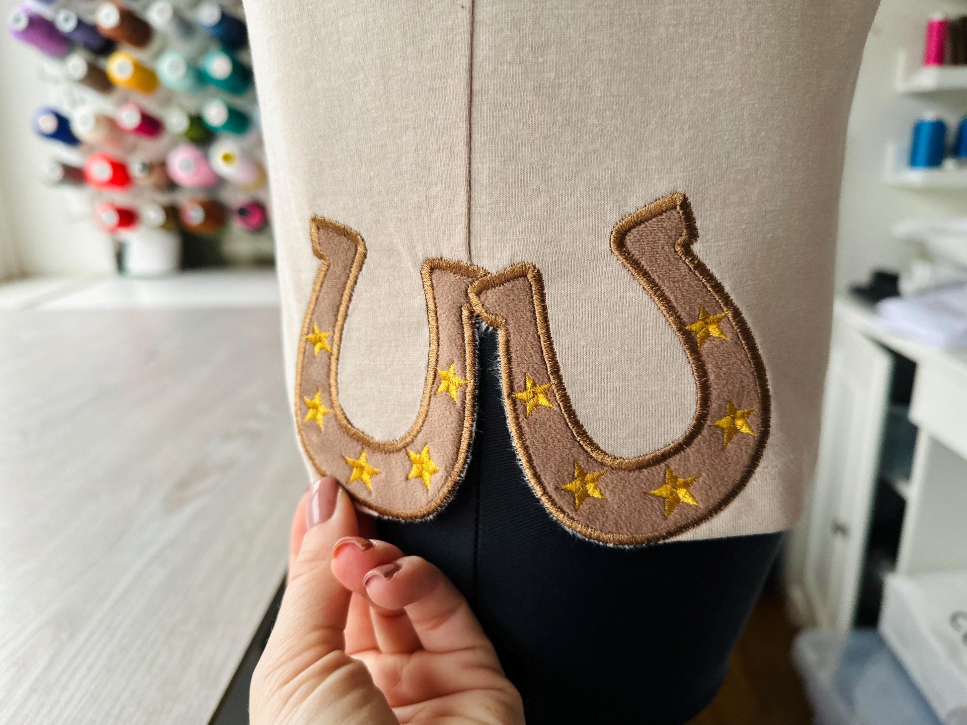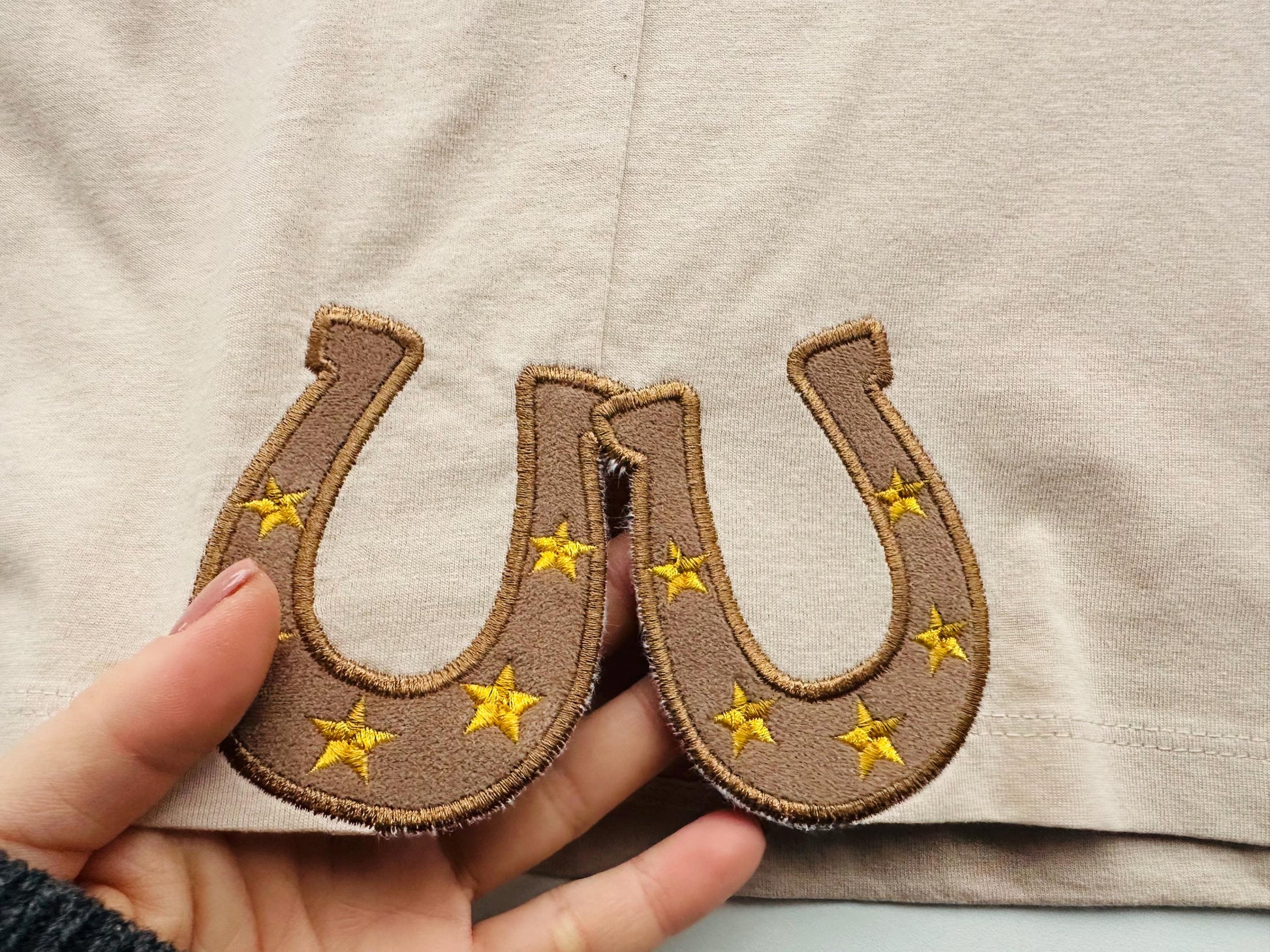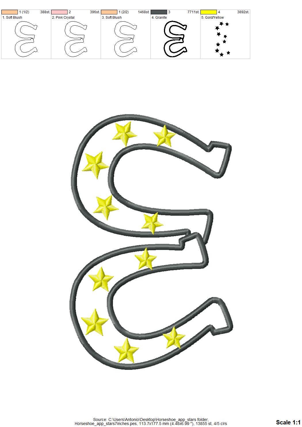 Horseshoe with tiny Stars side bow split seam Farm Horse stable Applique machine embroidery designs kids boys cowboy outfit t-shirt design
