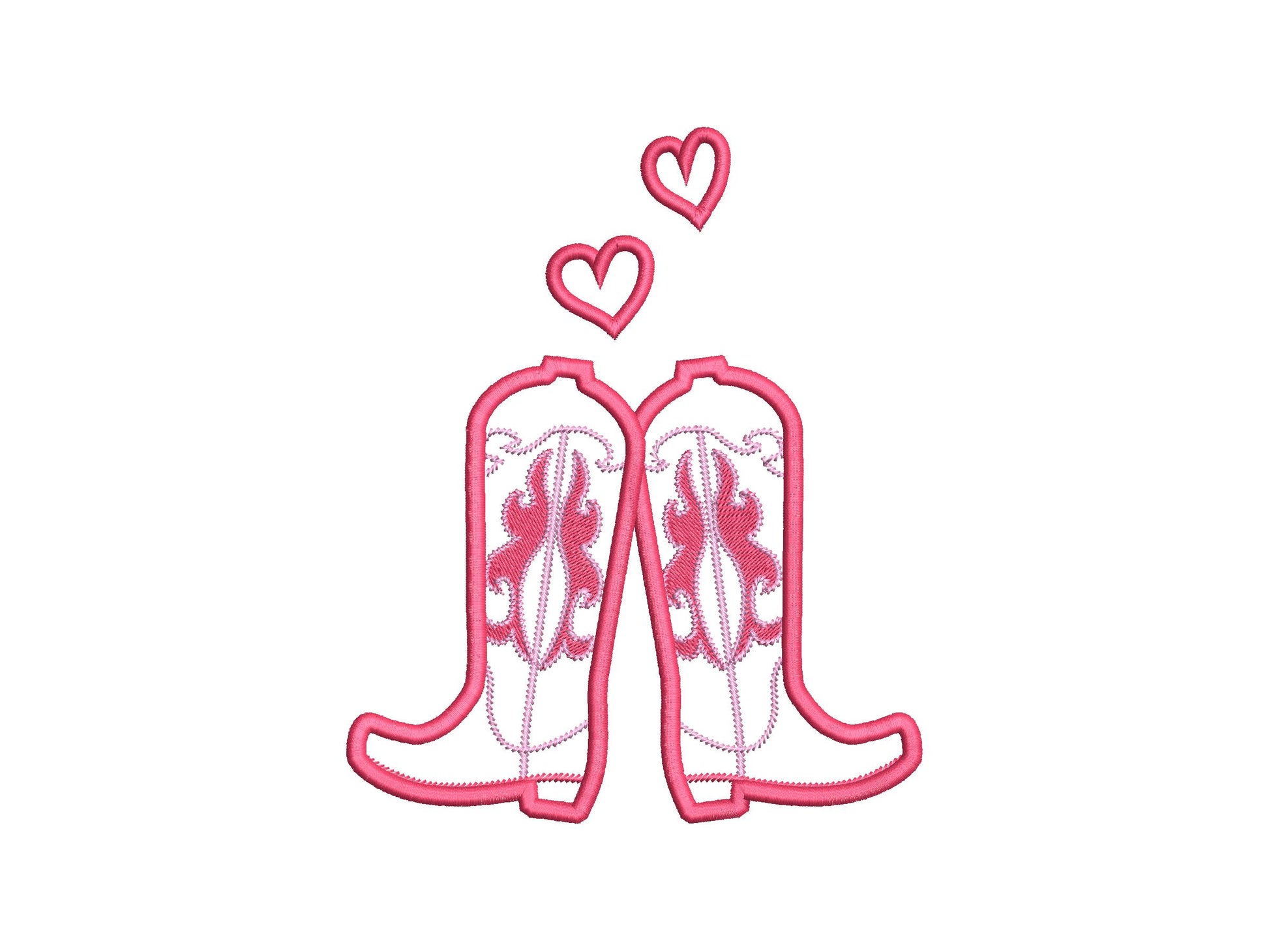 Valentine Heart Cowgirl Cowboy Boots split seam side machine embroidery designs Farm girls kids o..