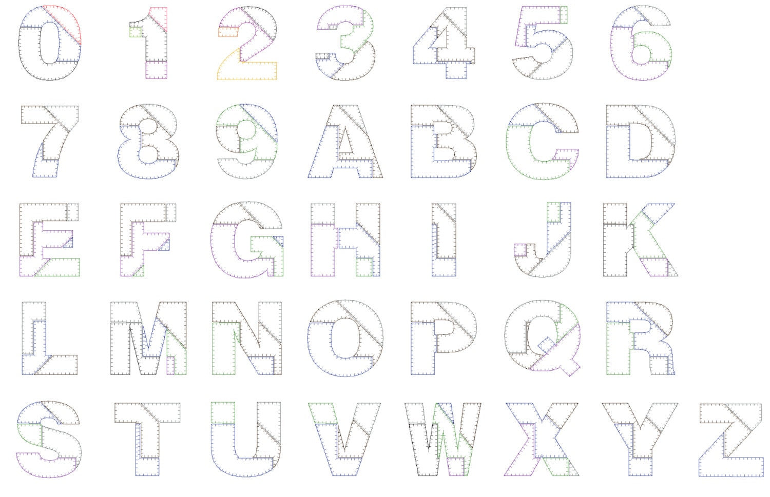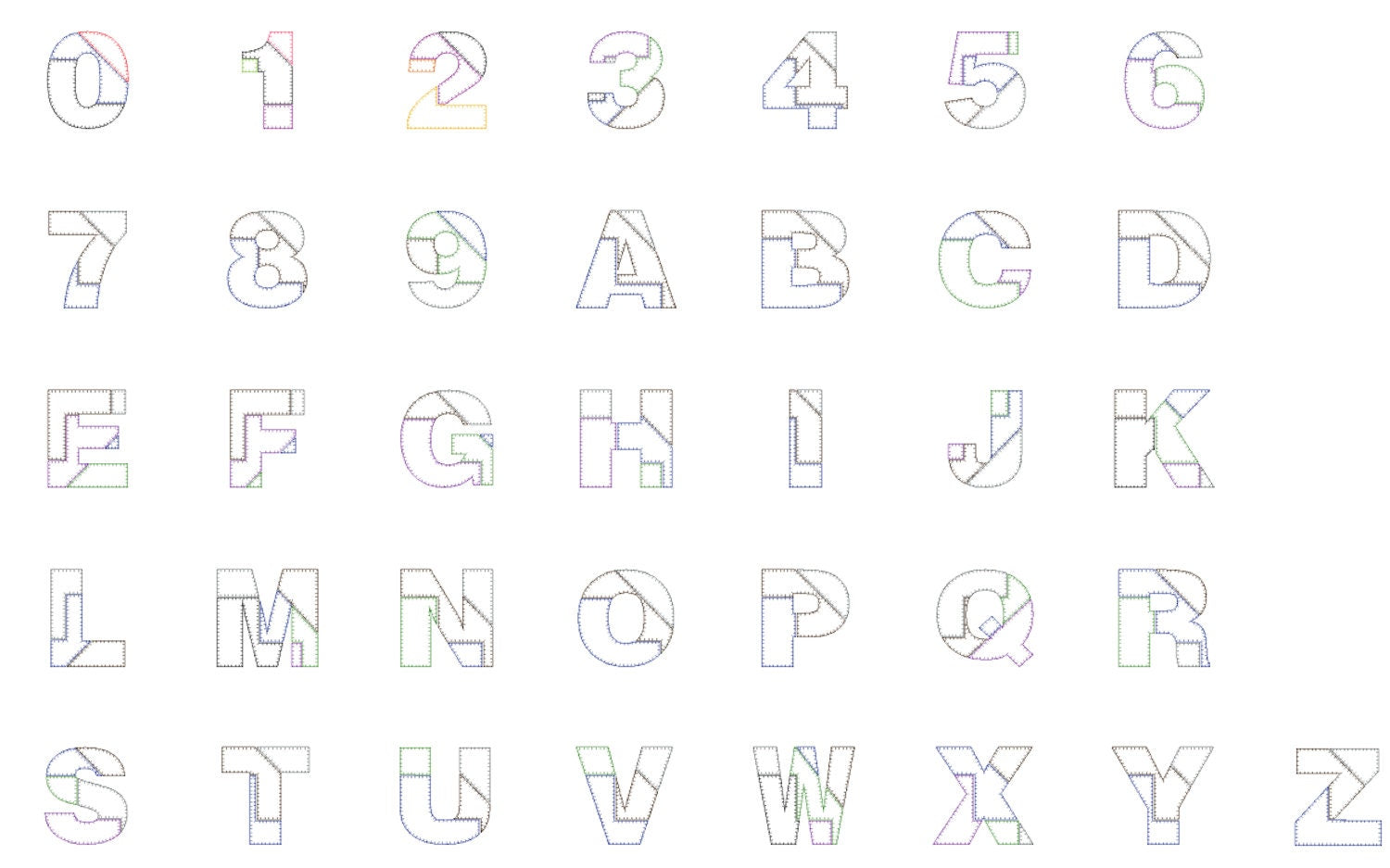 Iron Patchwork raggedy edges Applique FONT alphabet and numbers machine embroidery designs sizes for hoop 4x4 5x7 6x10 open edge Monogram