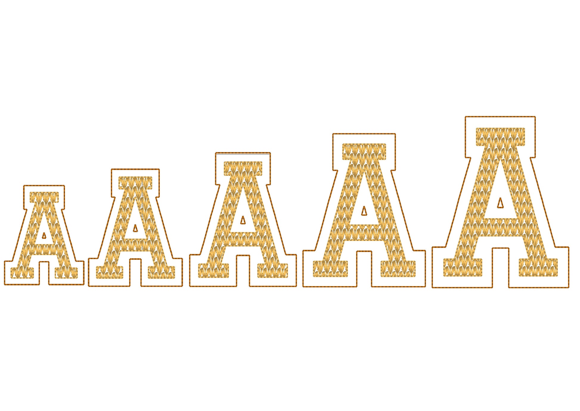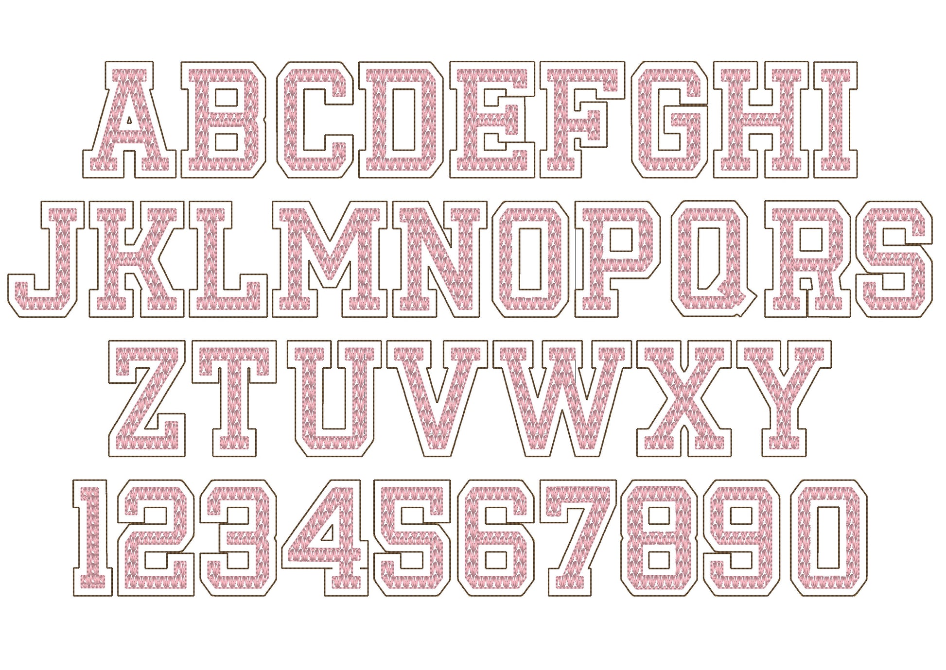 Knitted effect knit sweater light stitch Font Varsity collegiate outline Font sport alphabet monogram machine embroidery designs up to 3.7in