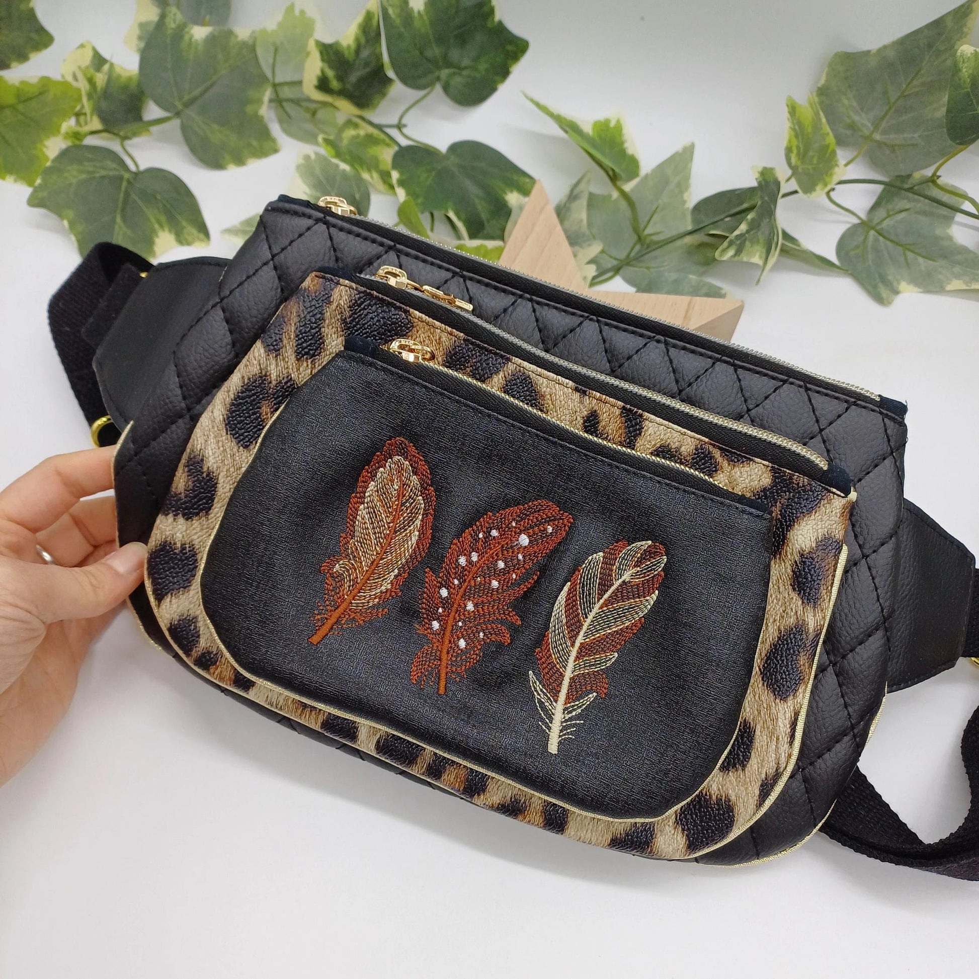 Light Tiger leopard printed Feathers, light delicate feathers single unique feather embroidery designs set 5 types sizes 3, 4, 5 inches