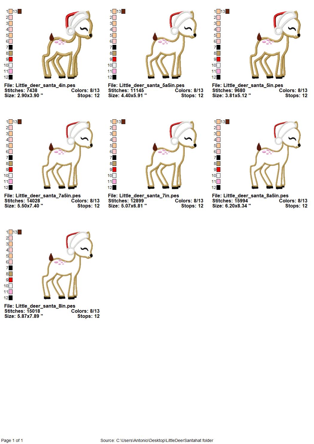 Little Baby deer Fawn with Santa hat Applique Design Baby Deer machine embroidery designs for hoop 4x4 5x7 6x10 Merry Christmas embroidery
