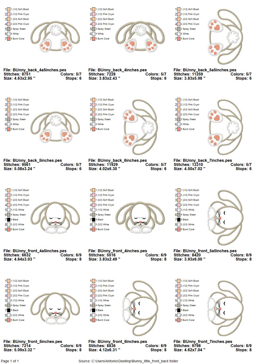 Little Bunny baby front and back Applique kids nursery girls boys machine embroidery designs