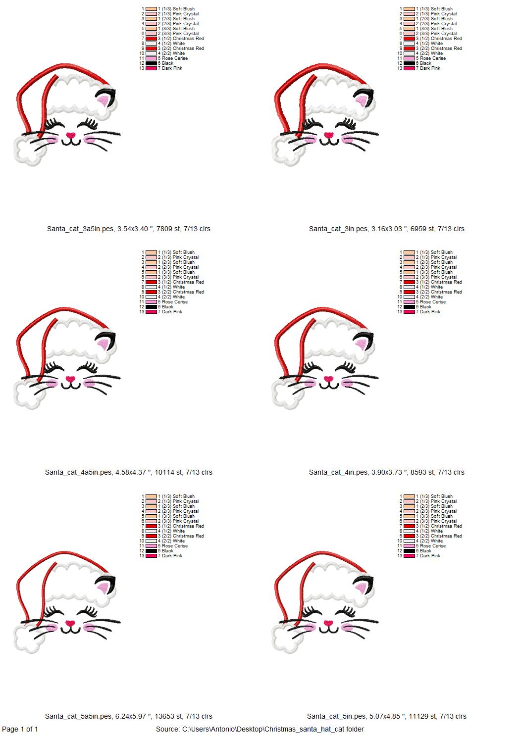 Little Christmas Kitty Cat with Santa hat Applique Cat face kids baby girls machine embroidery designs many sizes