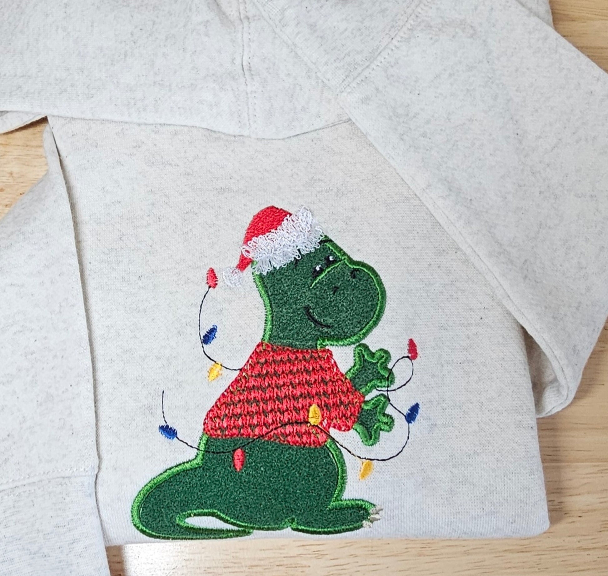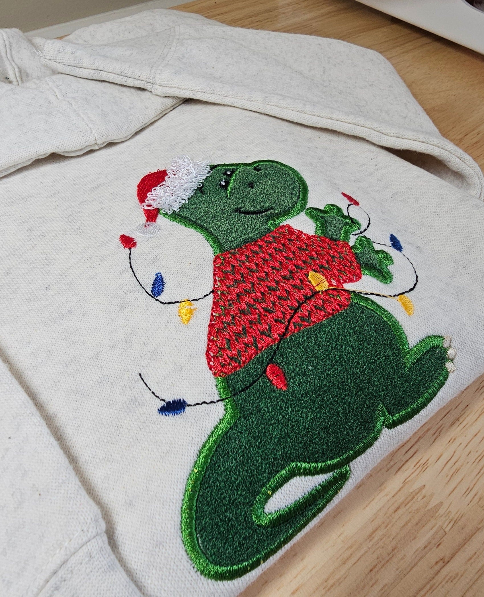 Little Dinosaur Christmas lights Fringed Santa hat knitted sweater cute Dino kids Applique machine embroidery designs for hoop 4x4 and 5x7
