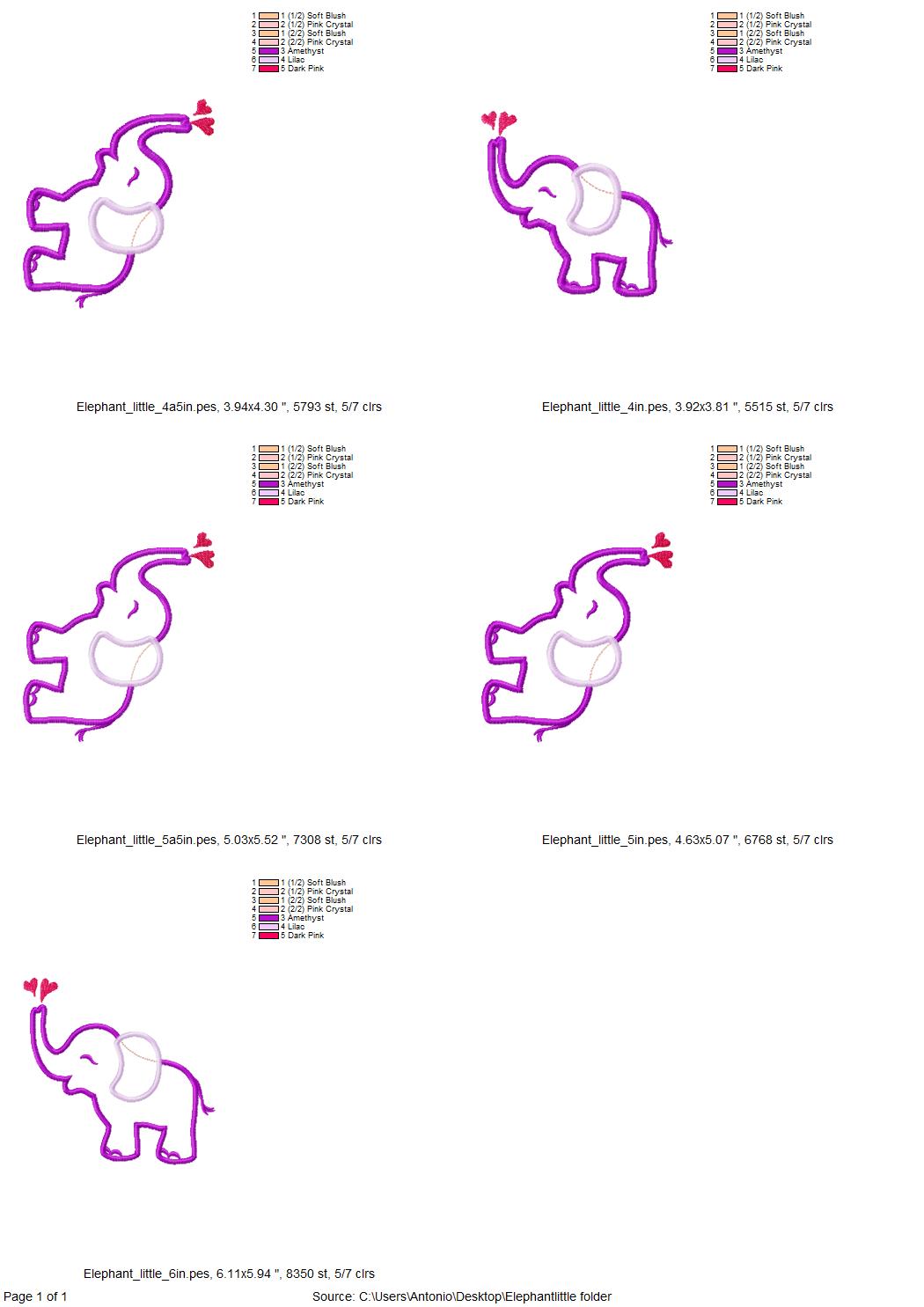 Little Elephant with mini hearts Applique animal kids girls baby machine embroidery designs assorted sizes
