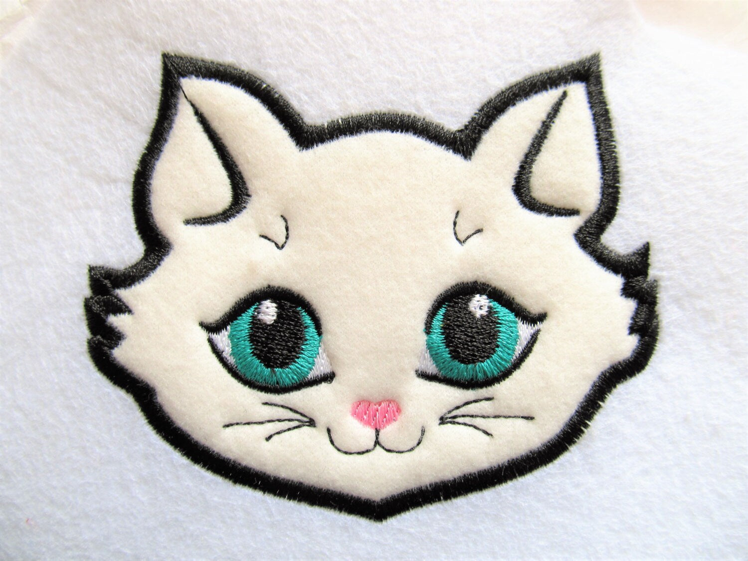 Little Kitty Cat head face Applique machine embroidery designs cute Cat applique pretty kitty sizes for hoop 4x4 and 5x5 kids outfit