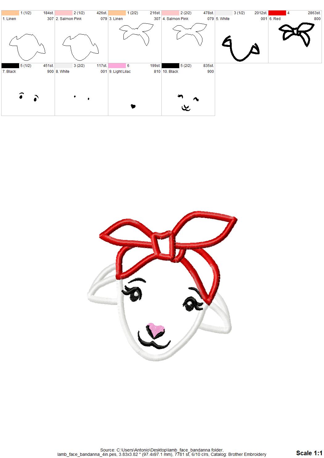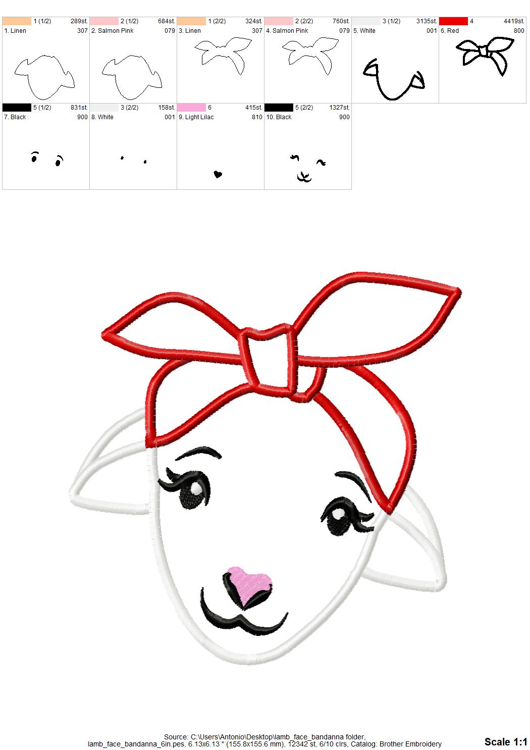 Cute little lamb sheep Applique lamb face head with bandanna machine embroidery designs Farm animal kids baby