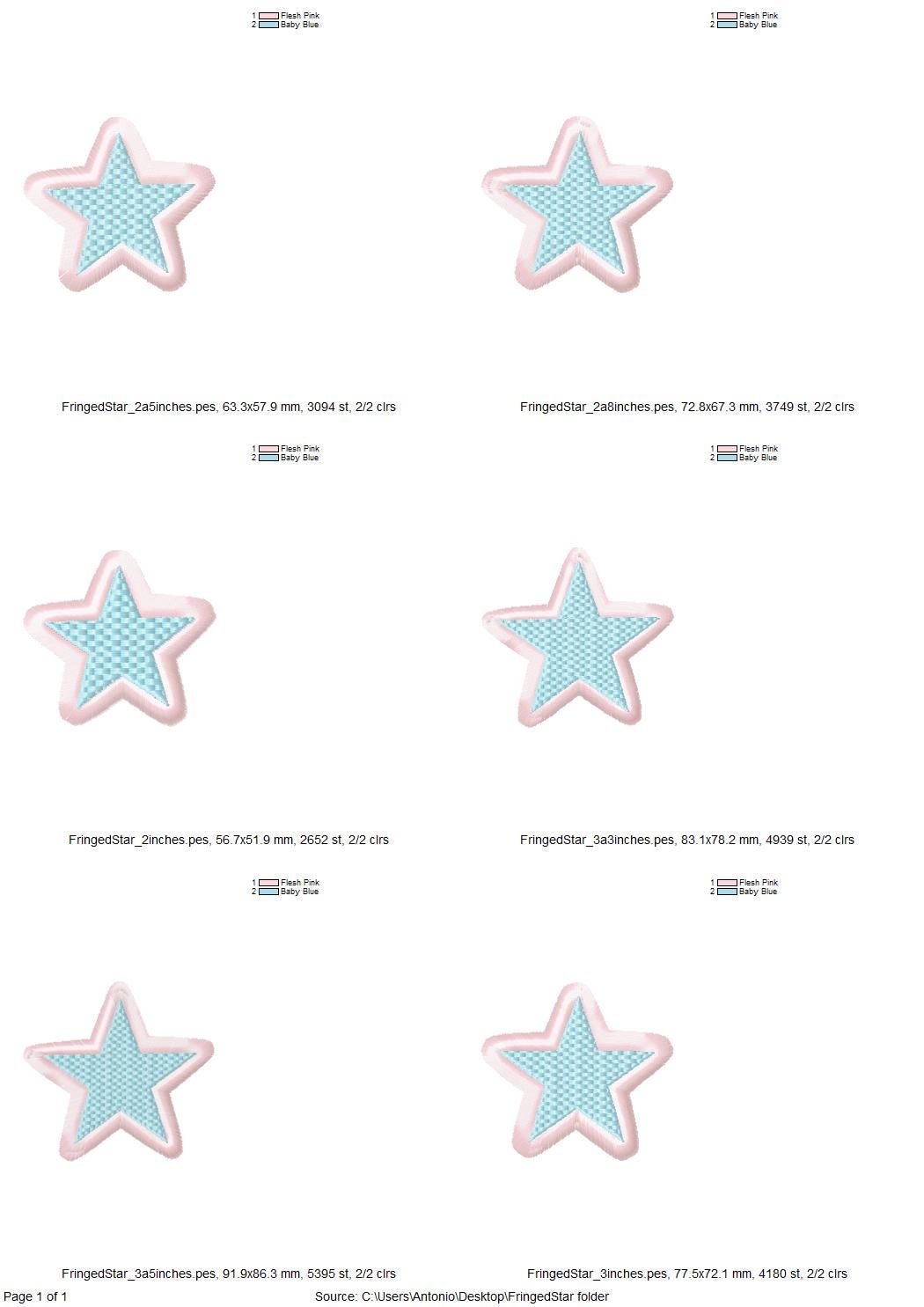 Little mini fringed fluffy Star waffle stitch and fringe machine embroidery designs fur chenille fringe in the hoop Star shape 2 up to 3.5in