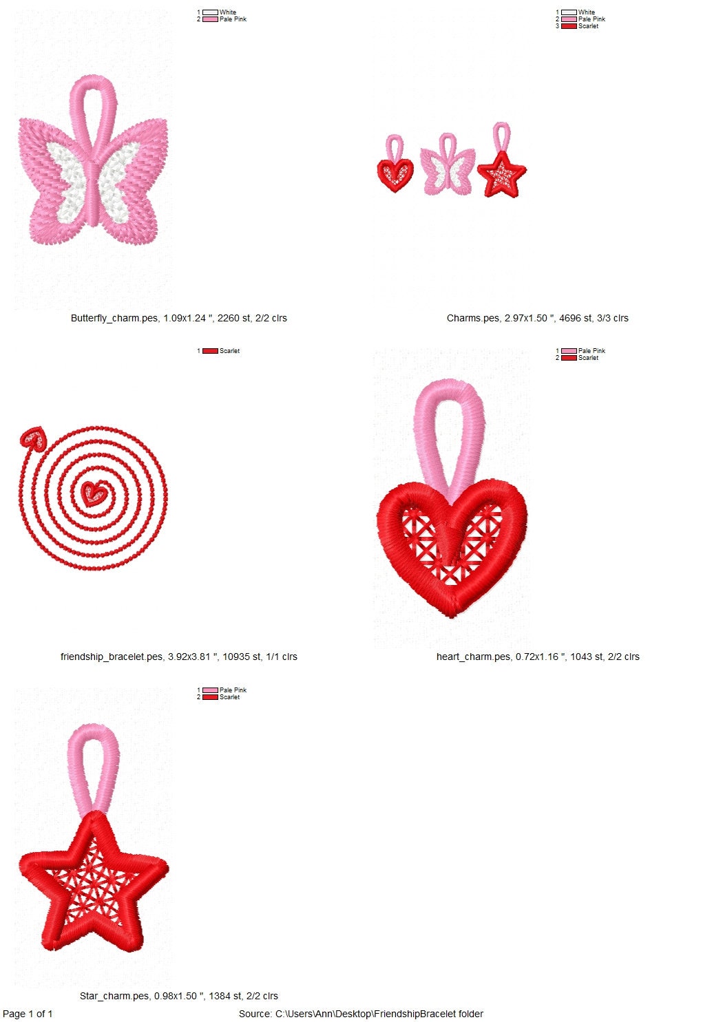 Little Princess Girl friendship bracelet necklace FSL Freestanding lace machine embroidery designs hoop 4x4 star heart butterfly charm ITH