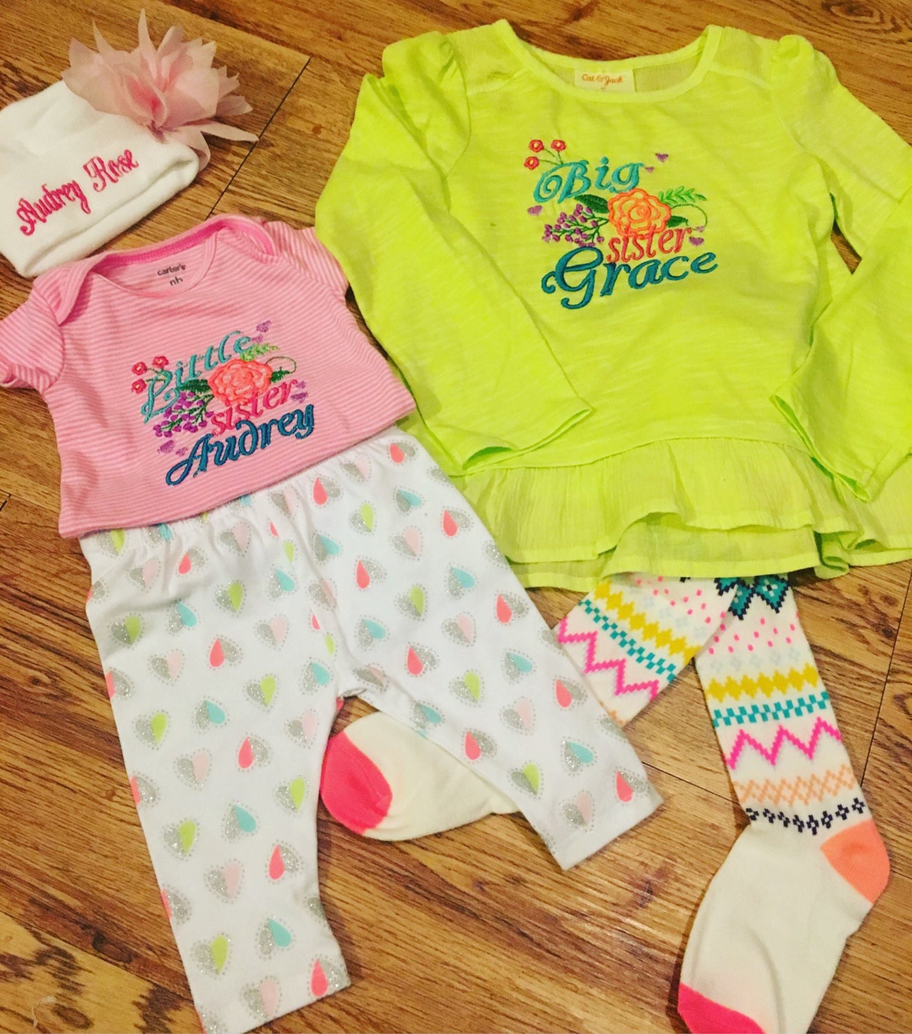 Little sister Big sister, sisters, shabby chic flowers, roses, saying - 2 pcs - machine embroidery applique designs - 4x4 5x7