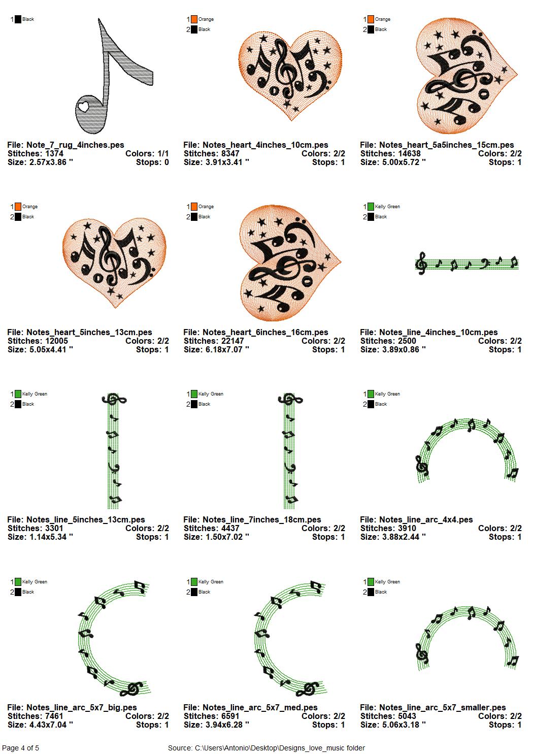 Love music Heart Big SET of music notes heart arc Note Border light stitch machine embroidery designs multiple sizes Musician kids girls